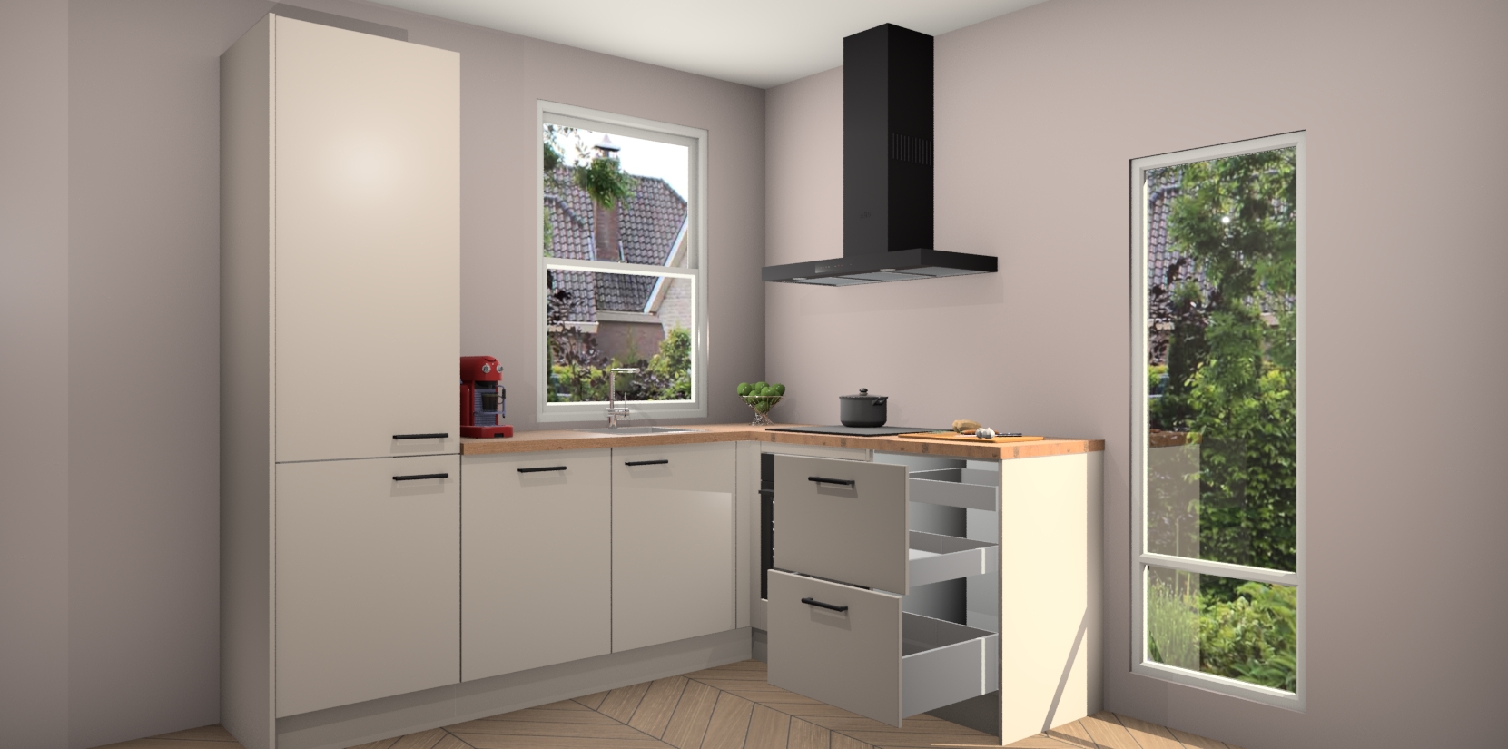 De prachtige Kasjmier keuken Phuket is de perfecte keuze als u op zoek bent naar een moderne hoekkeuken met alle luxe en comfort die u kunt verwachten! De uitstraling in het houtlook-design draagt bij aan de warme sfeer die u nu al voelt wanneer u er naar kijkt. Heeft u genoeg van ouderwetse keukens? Probeer dan direct deze moderne, mooie hoekkeukens en laat iedereen verbluft achter!