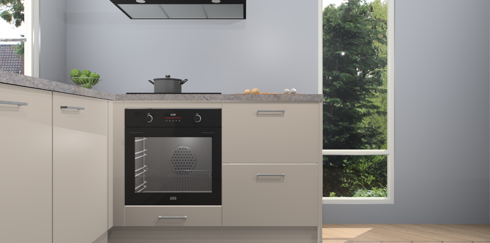 De Kasjmier keuken Phuket heeft alles wat u maar kunt wensen. Niet alleen zijn er softclose deuren, maar ook 5 ingebouwde apparaten: een oven, inductiekookplaat, afzuigkap, vaatwasser en koelkast - waarbij u later gemakkelijk naar het AEG merk, van inductiekookplaat naar kookplaat met geïntegreerde afzuiging of van oven naar combimagnetron kunt upgraden. Dat alles tegen een vast laag tarief! Bovendien geeft de Kasjmier keuken Phuket supersnelle levering van 7 weken. Echt iets voor u als u er niet op wilt wachten om het resultaat te zien in eigen keuken!