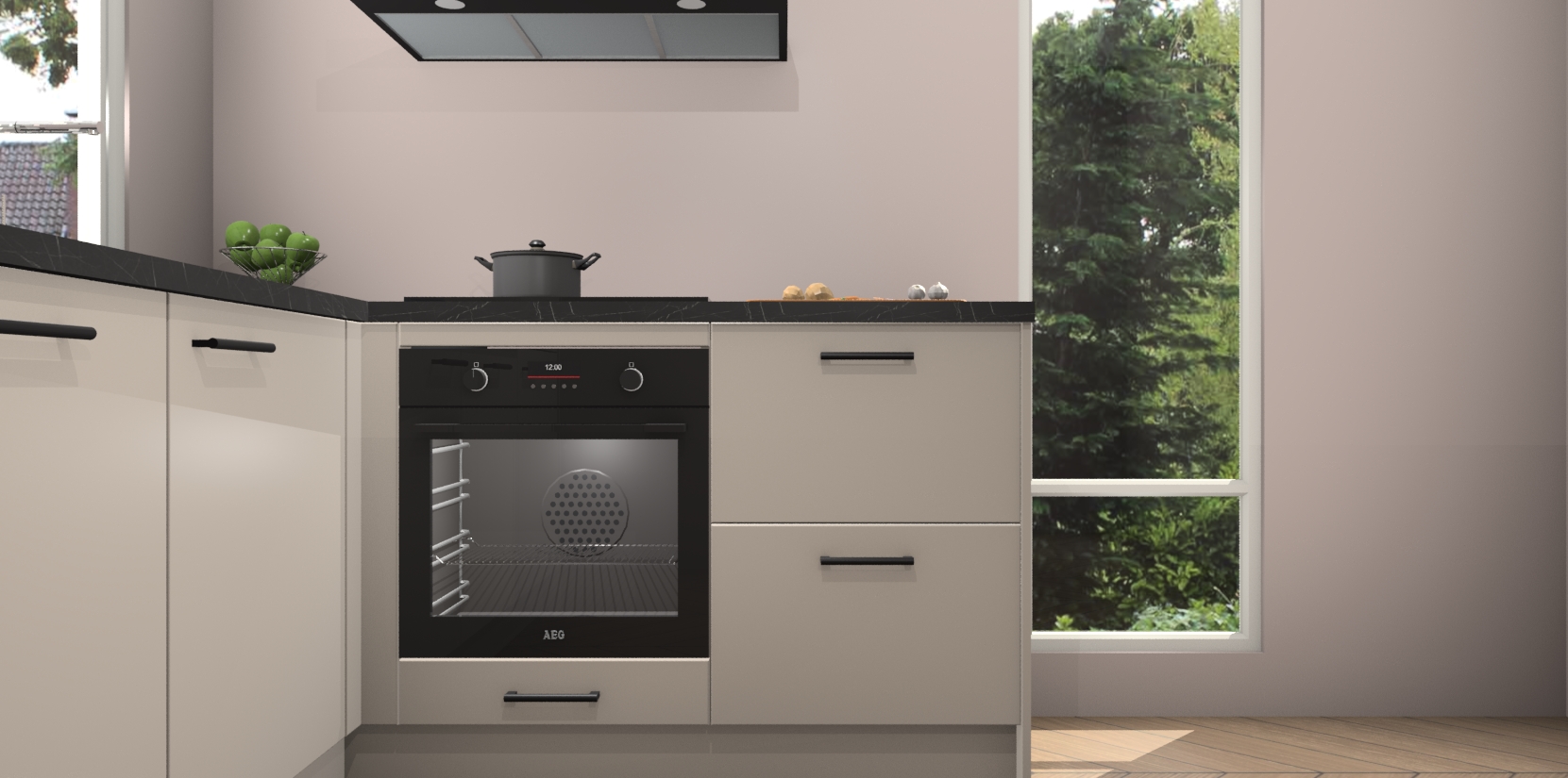 De Kasjmier keuken Phuket heeft alles wat u maar kunt wensen. Niet alleen zijn er softclose deuren, maar ook 5 ingebouwde apparaten: een oven, inductiekookplaat, afzuigkap, vaatwasser en koelkast - waarbij u later gemakkelijk naar het AEG merk, van inductiekookplaat naar kookplaat met geïntegreerde afzuiging of van oven naar combimagnetron kunt upgraden. Dat alles tegen een vast laag tarief! Bovendien geeft de Kasjmier keuken Phuket supersnelle levering van 7 weken. Echt iets voor u als u er niet op wilt wachten om het resultaat te zien in eigen keuken!