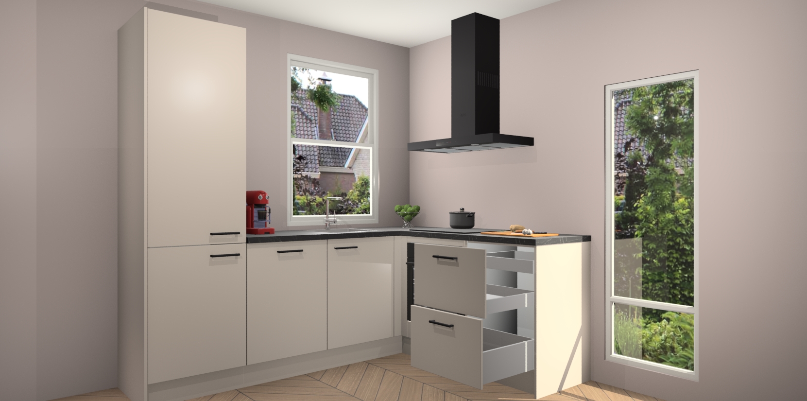De prachtige Kasjmier keuken Phuket is de perfecte keuze als u op zoek bent naar een moderne hoekkeuken met alle luxe en comfort die u kunt verwachten! De uitstraling in het houtlook-design draagt bij aan de warme sfeer die u nu al voelt wanneer u er naar kijkt. Heeft u genoeg van ouderwetse keukens? Probeer dan direct deze moderne, mooie hoekkeukens en laat iedereen verbluft achter!