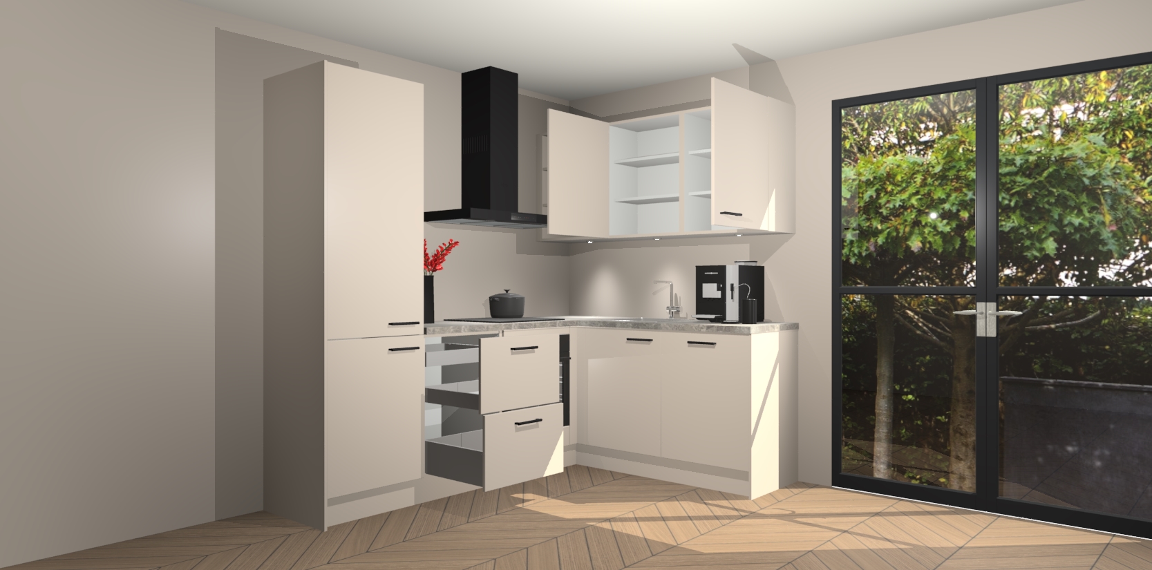 In deze box zijn alle kleuren verzameld van de deuren en werkbladen. Vraag de gratis kleurenbox aan en kijk thuis rustig verder!