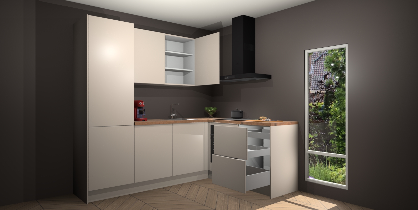 Inclusief plinten, stelpoten en werkblad