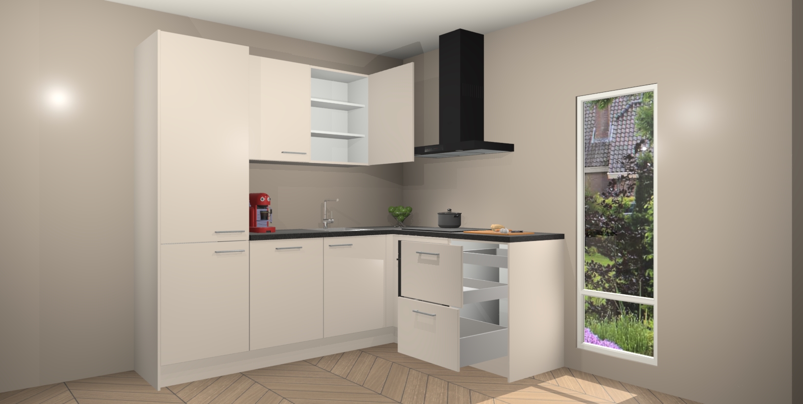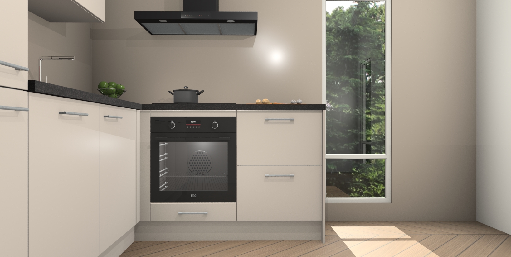 Inclusief plinten, stelpoten en werkblad