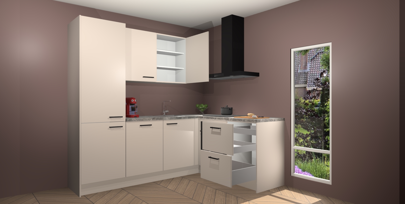 In deze box zijn alle kleuren verzameld van de deuren en werkbladen. Vraag de gratis kleurenbox aan en kijk thuis rustig verder!