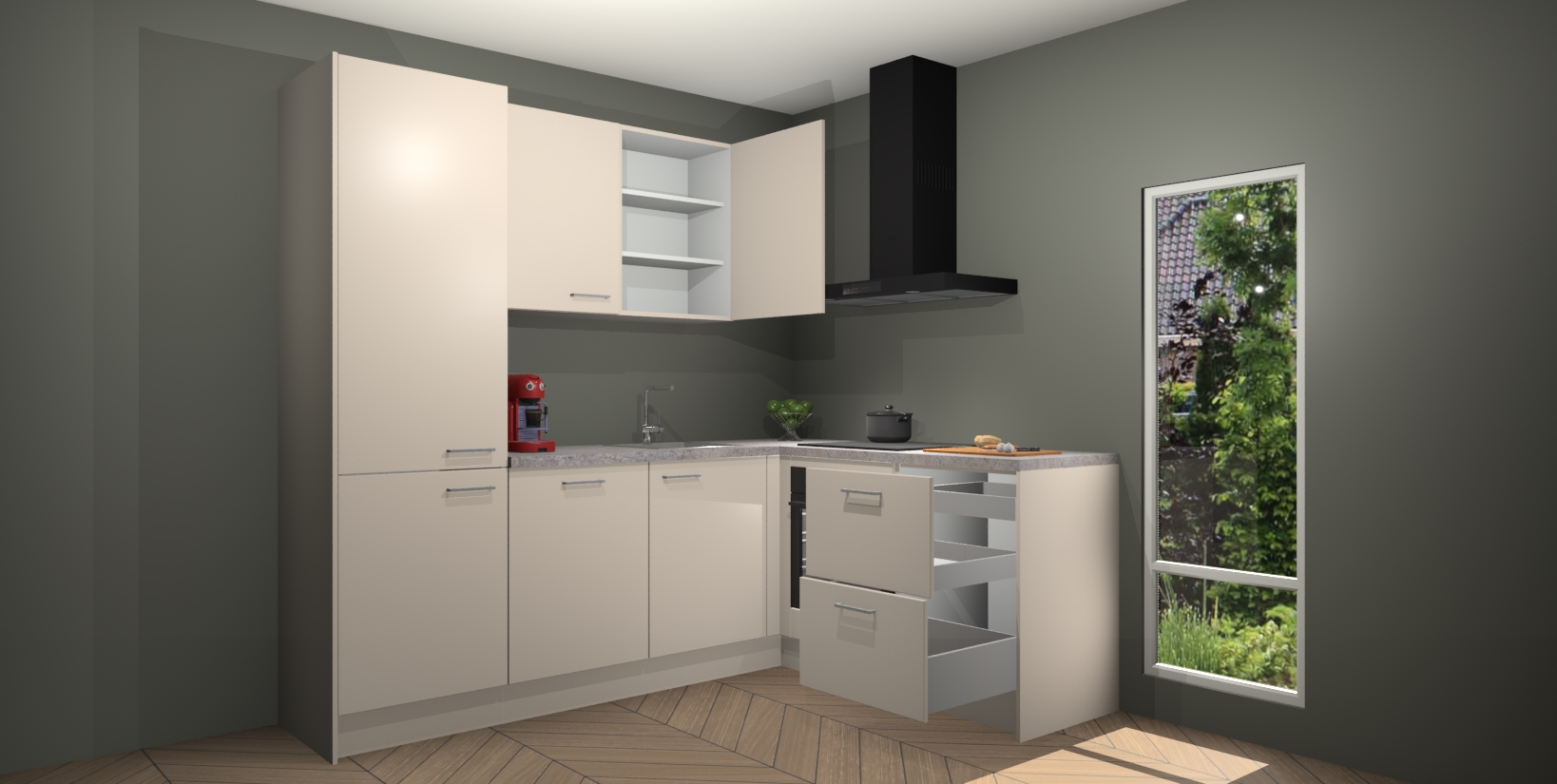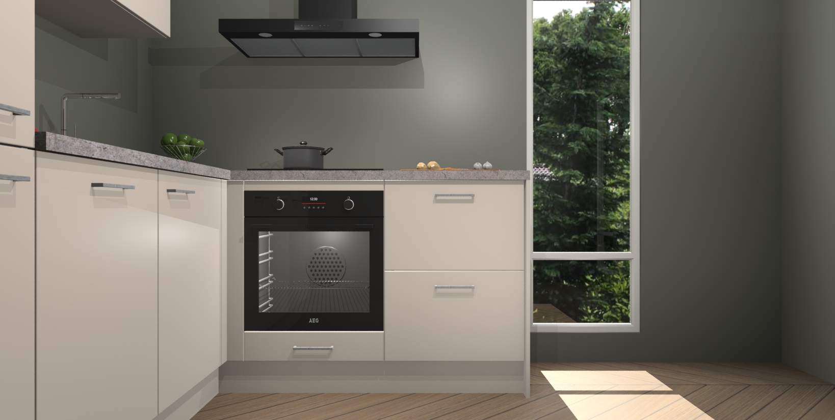 Inclusief plinten, stelpoten en werkblad