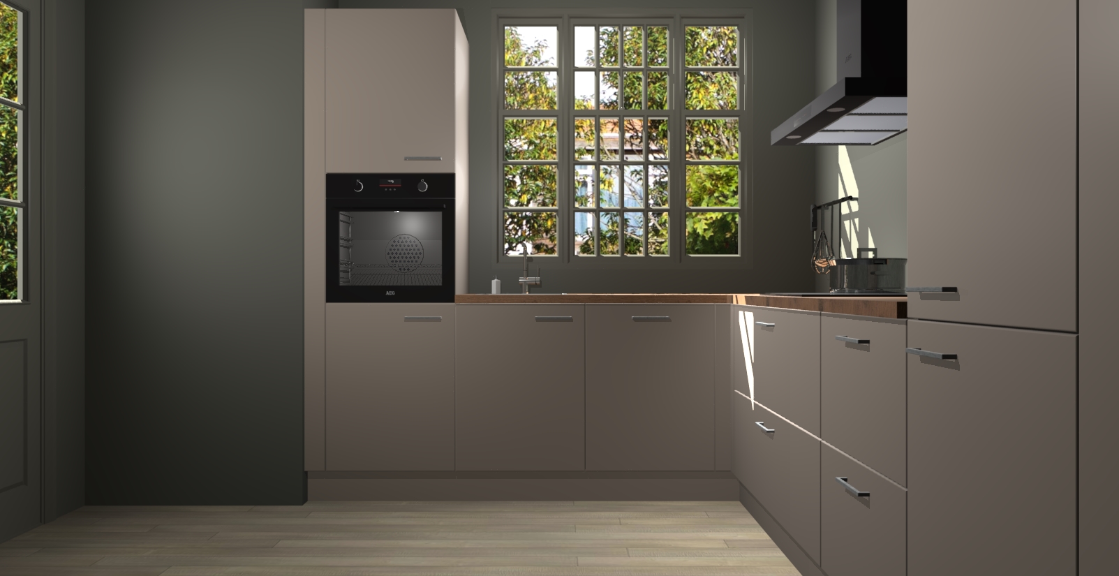 Met een modern, tijdloos design en ruime opslagruimte, zult u zich in no-time thuis voelen in uw nieuwe keuken. Uw leven wordt eenvoudiger met de soft-close deuren die voor het ultieme stille comfort zorgen - geen geluid dat u stoort terwijl u kookt. Ook is de keuken voorzien van 5 ingebouwde apparaten: een oven, inductie kookplaat, afzuigkap, vaatwasser en koelkast. Deze kunnen gemakkelijk na bestelling worden bijgewerkt naar AEG - waardoor uw luxe ervaring compleet is.
