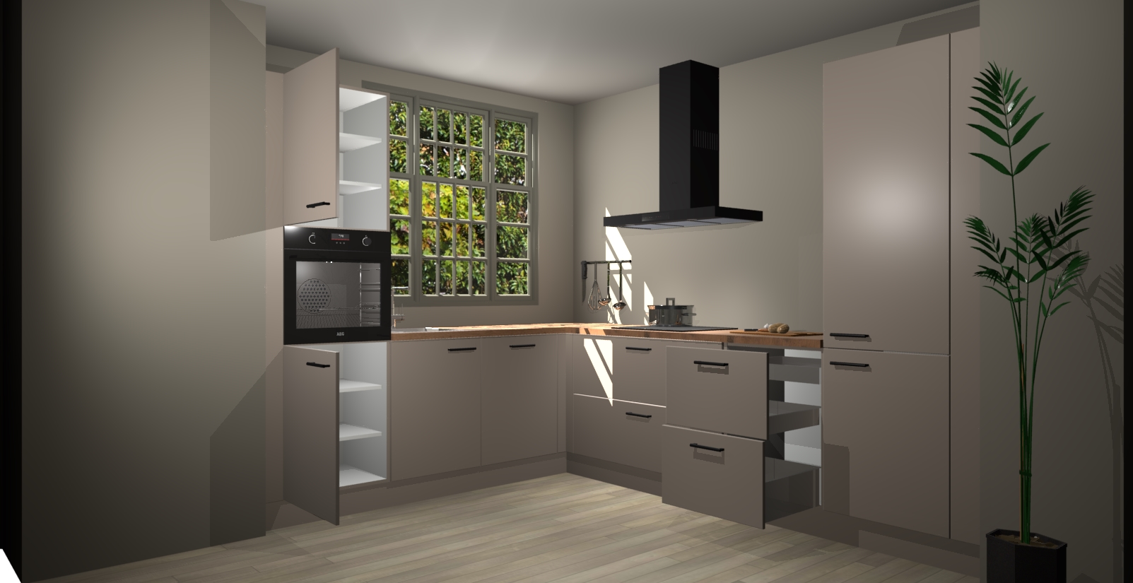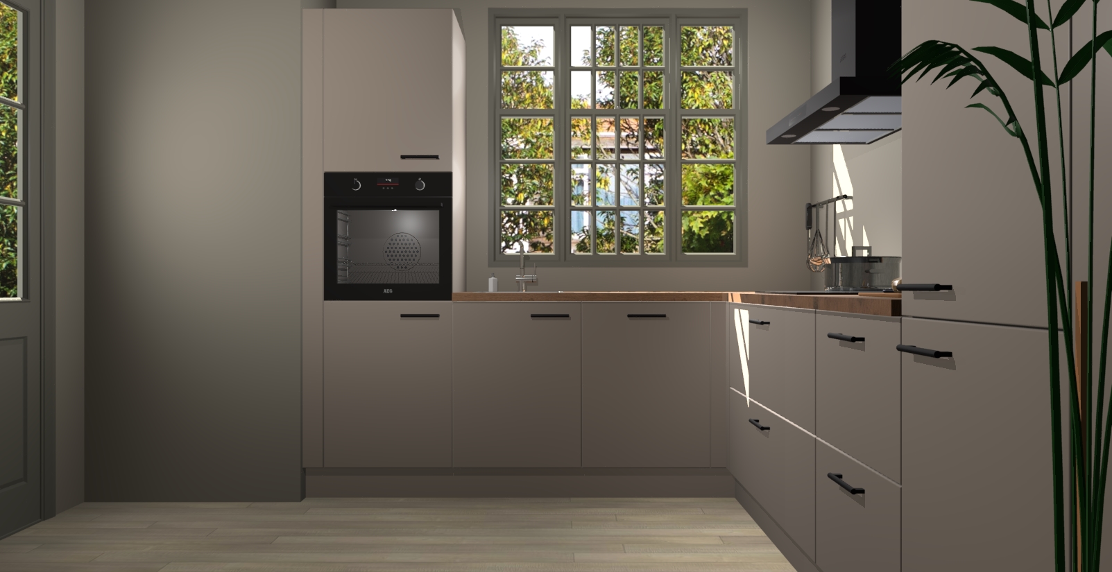 Met een modern, tijdloos design en ruime opslagruimte, zult u zich in no-time thuis voelen in uw nieuwe keuken. Uw leven wordt eenvoudiger met de soft-close deuren die voor het ultieme stille comfort zorgen - geen geluid dat u stoort terwijl u kookt. Ook is de keuken voorzien van 5 ingebouwde apparaten: een oven, inductie kookplaat, afzuigkap, vaatwasser en koelkast. Deze kunnen gemakkelijk na bestelling worden bijgewerkt naar AEG - waardoor uw luxe ervaring compleet is.