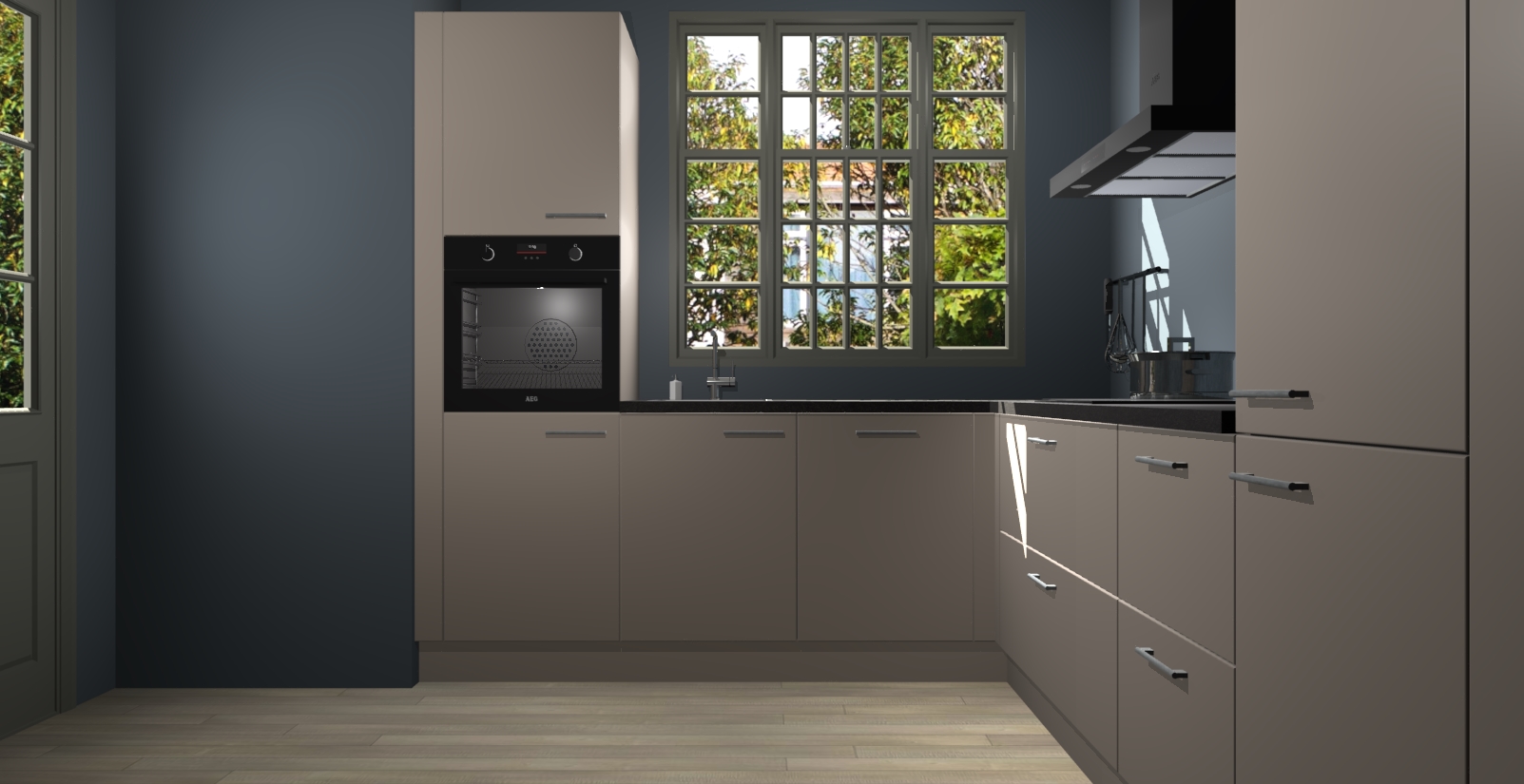 Met een modern, tijdloos design en ruime opslagruimte, zult u zich in no-time thuis voelen in uw nieuwe keuken. Uw leven wordt eenvoudiger met de soft-close deuren die voor het ultieme stille comfort zorgen - geen geluid dat u stoort terwijl u kookt. Ook is de keuken voorzien van 5 ingebouwde apparaten: een oven, inductie kookplaat, afzuigkap, vaatwasser en koelkast. Deze kunnen gemakkelijk na bestelling worden bijgewerkt naar AEG - waardoor uw luxe ervaring compleet is.