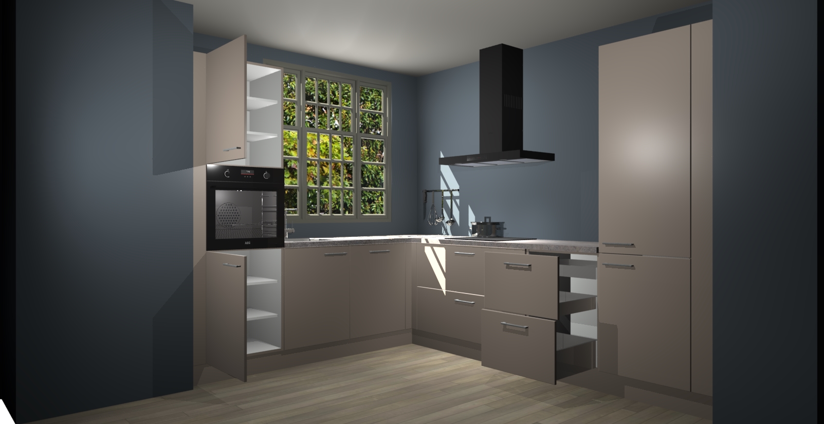 Met een modern, tijdloos design en ruime opslagruimte, zult u zich in no-time thuis voelen in uw nieuwe keuken. Uw leven wordt eenvoudiger met de soft-close deuren die voor het ultieme stille comfort zorgen - geen geluid dat u stoort terwijl u kookt. Ook is de keuken voorzien van 5 ingebouwde apparaten: een oven, inductie kookplaat, afzuigkap, vaatwasser en koelkast. Deze kunnen gemakkelijk na bestelling worden bijgewerkt naar AEG - waardoor uw luxe ervaring compleet is.
