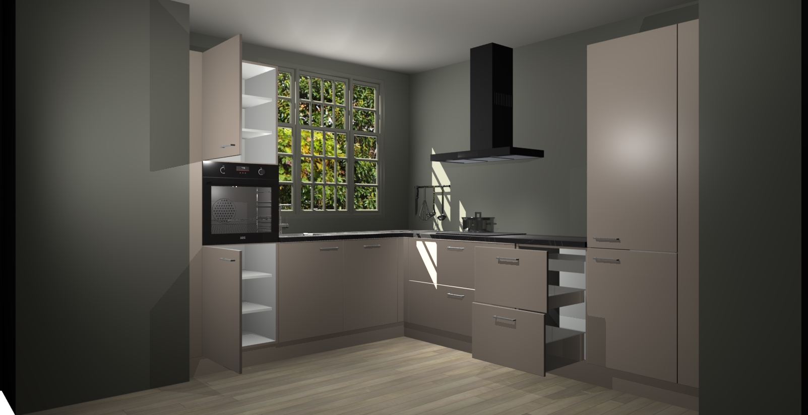 Met een modern, tijdloos design en ruime opslagruimte, zult u zich in no-time thuis voelen in uw nieuwe keuken. Uw leven wordt eenvoudiger met de soft-close deuren die voor het ultieme stille comfort zorgen - geen geluid dat u stoort terwijl u kookt. Ook is de keuken voorzien van 5 ingebouwde apparaten: een oven, inductie kookplaat, afzuigkap, vaatwasser en koelkast. Deze kunnen gemakkelijk na bestelling worden bijgewerkt naar AEG - waardoor uw luxe ervaring compleet is.