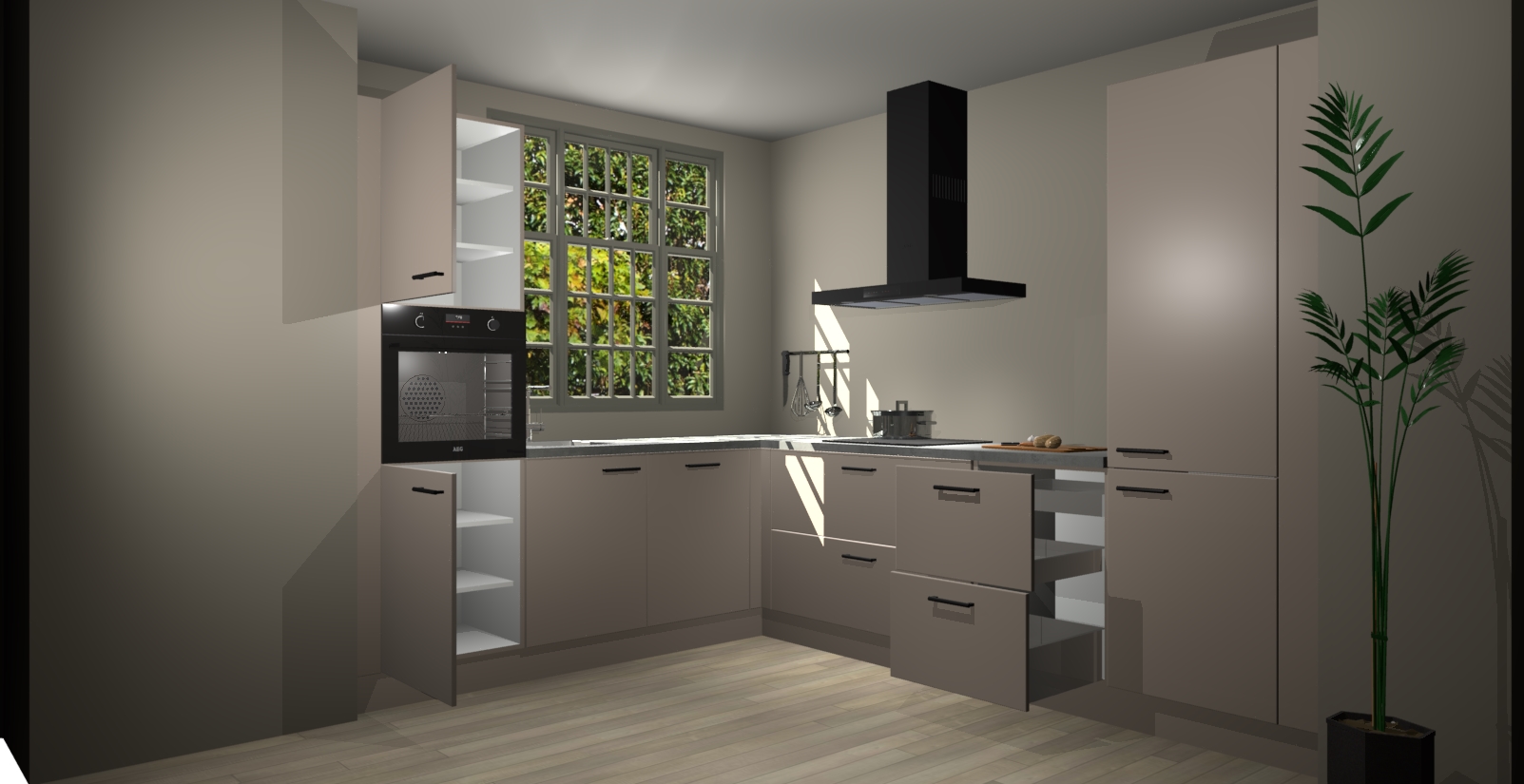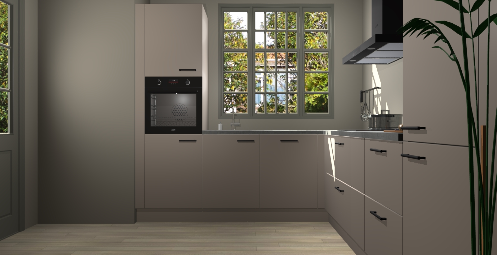 Met een modern, tijdloos design en ruime opslagruimte, zult u zich in no-time thuis voelen in uw nieuwe keuken. Uw leven wordt eenvoudiger met de soft-close deuren die voor het ultieme stille comfort zorgen - geen geluid dat u stoort terwijl u kookt. Ook is de keuken voorzien van 5 ingebouwde apparaten: een oven, inductie kookplaat, afzuigkap, vaatwasser en koelkast. Deze kunnen gemakkelijk na bestelling worden bijgewerkt naar AEG - waardoor uw luxe ervaring compleet is.