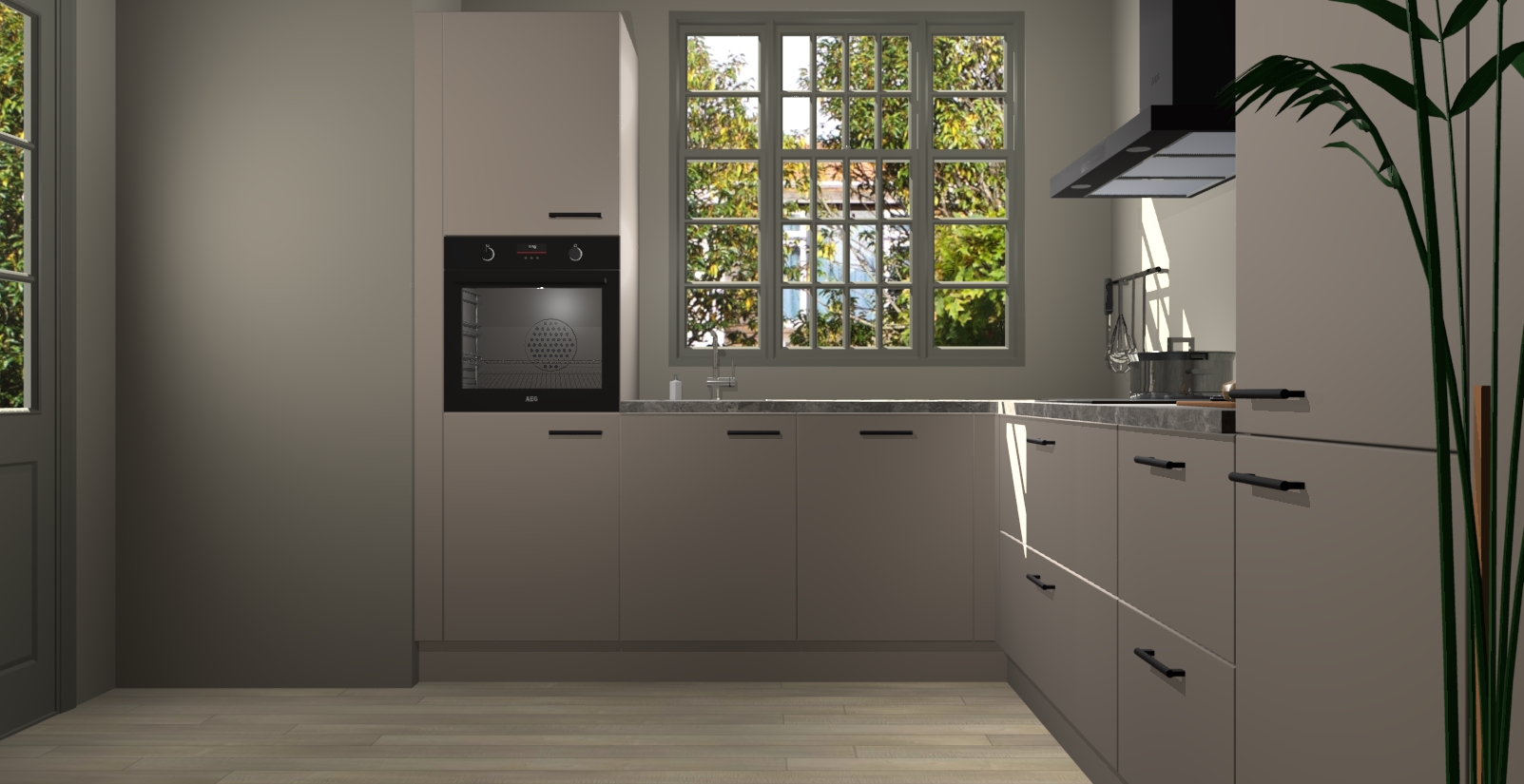 Met een modern, tijdloos design en ruime opslagruimte, zult u zich in no-time thuis voelen in uw nieuwe keuken. Uw leven wordt eenvoudiger met de soft-close deuren die voor het ultieme stille comfort zorgen - geen geluid dat u stoort terwijl u kookt. Ook is de keuken voorzien van 5 ingebouwde apparaten: een oven, inductie kookplaat, afzuigkap, vaatwasser en koelkast. Deze kunnen gemakkelijk na bestelling worden bijgewerkt naar AEG - waardoor uw luxe ervaring compleet is.