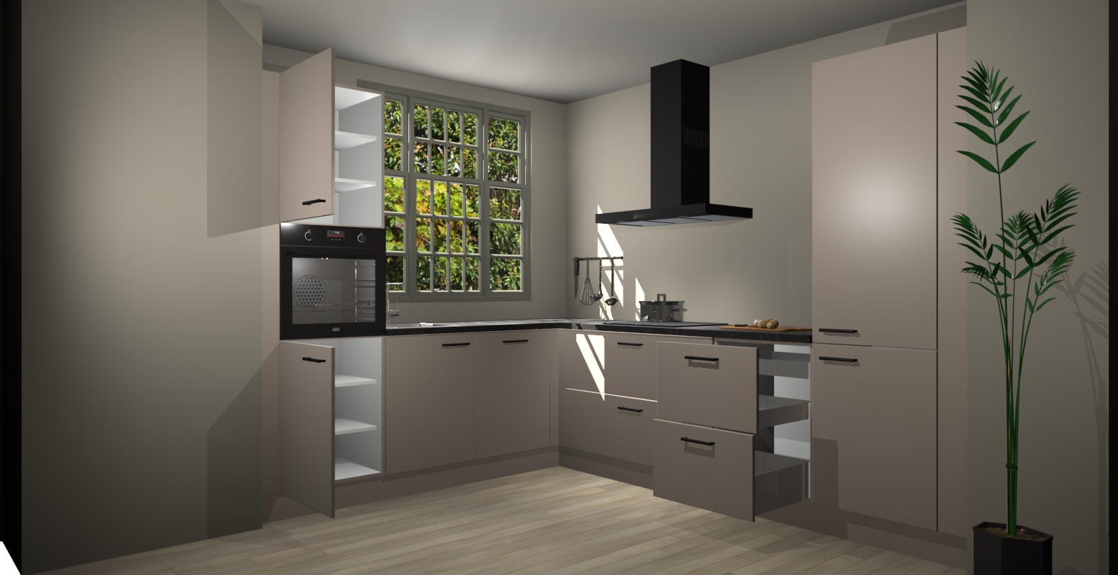 Met een modern, tijdloos design en ruime opslagruimte, zult u zich in no-time thuis voelen in uw nieuwe keuken. Uw leven wordt eenvoudiger met de soft-close deuren die voor het ultieme stille comfort zorgen - geen geluid dat u stoort terwijl u kookt. Ook is de keuken voorzien van 5 ingebouwde apparaten: een oven, inductie kookplaat, afzuigkap, vaatwasser en koelkast. Deze kunnen gemakkelijk na bestelling worden bijgewerkt naar AEG - waardoor uw luxe ervaring compleet is.