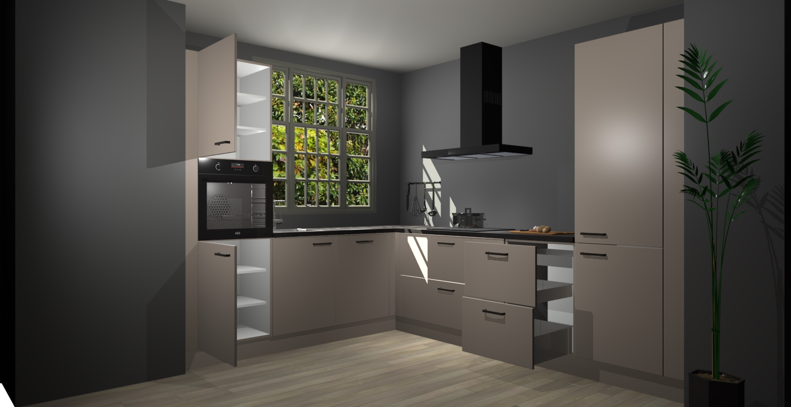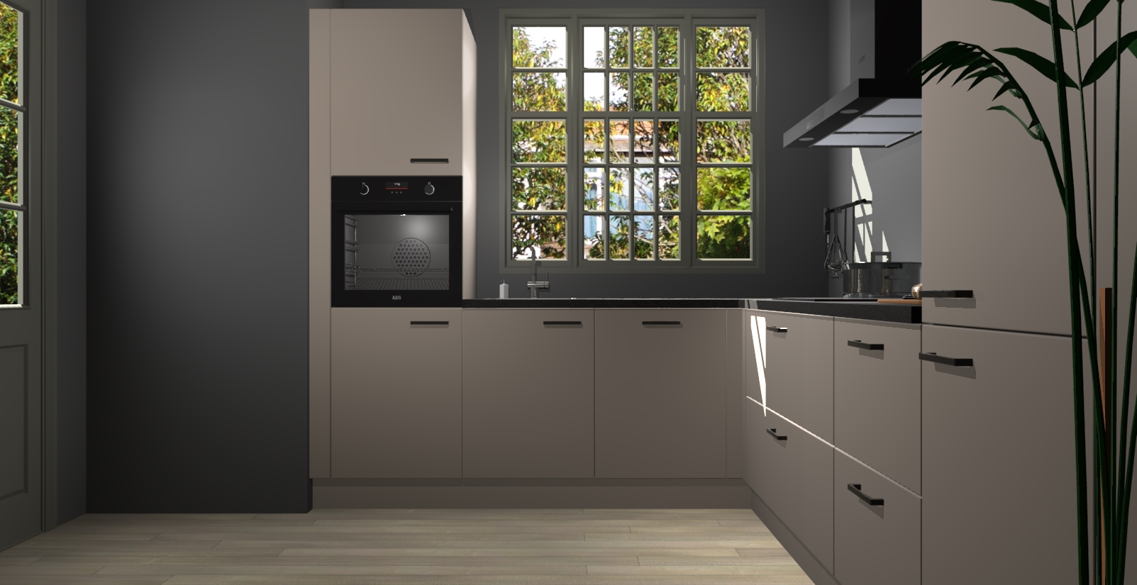 Met een modern, tijdloos design en ruime opslagruimte, zult u zich in no-time thuis voelen in uw nieuwe keuken. Uw leven wordt eenvoudiger met de soft-close deuren die voor het ultieme stille comfort zorgen - geen geluid dat u stoort terwijl u kookt. Ook is de keuken voorzien van 5 ingebouwde apparaten: een oven, inductie kookplaat, afzuigkap, vaatwasser en koelkast. Deze kunnen gemakkelijk na bestelling worden bijgewerkt naar AEG - waardoor uw luxe ervaring compleet is.