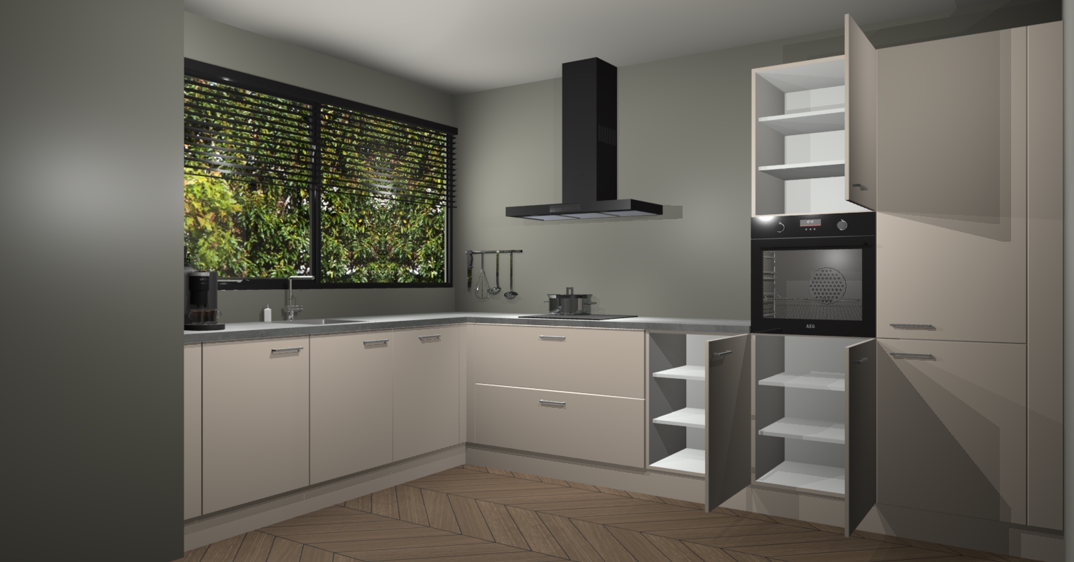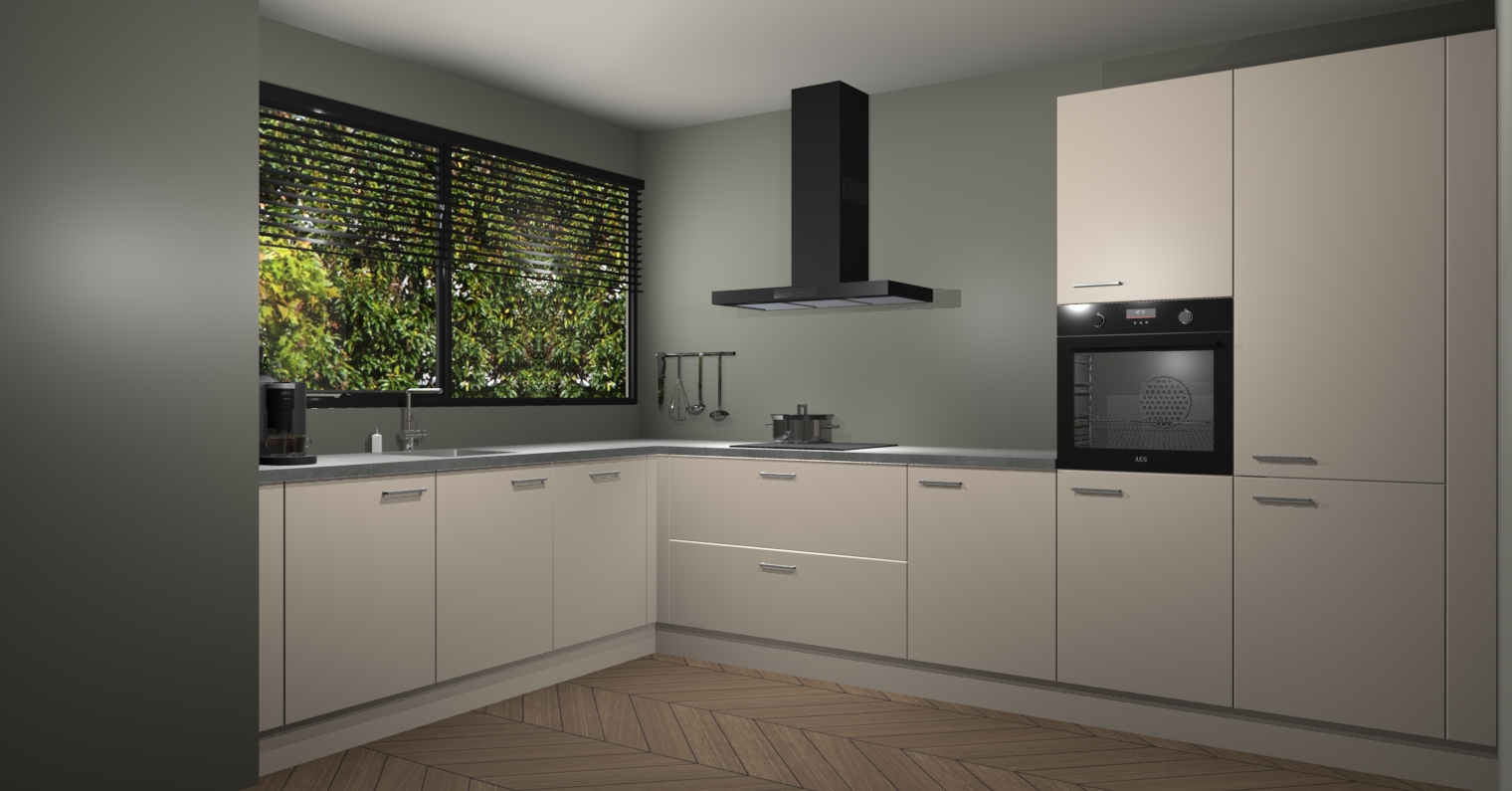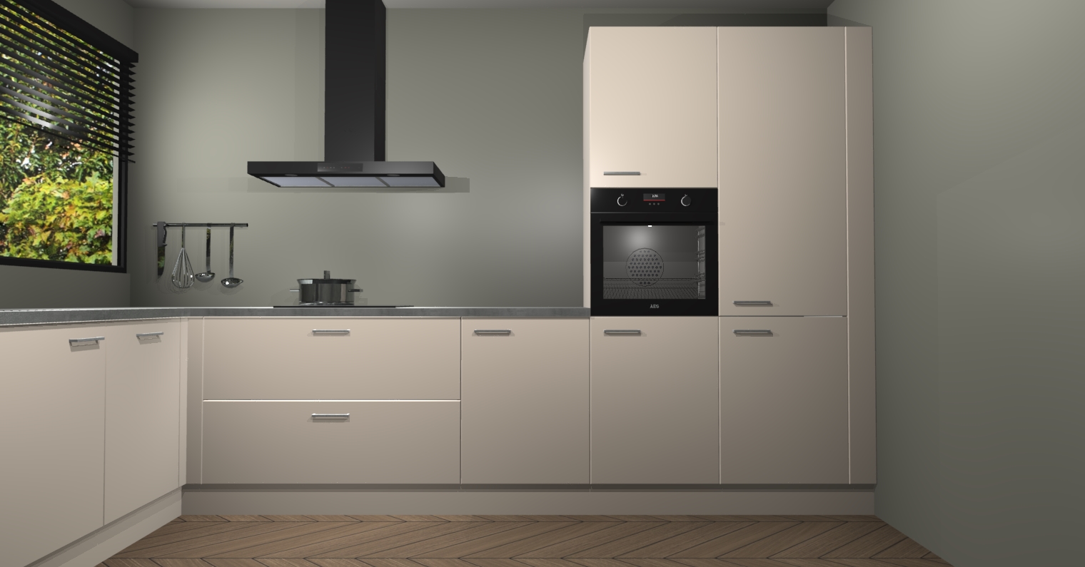 Met een modern, tijdloos design en ruime opslagruimte, zult u zich in no-time thuis voelen in uw nieuwe keuken. Uw leven wordt eenvoudiger met de soft-close deuren die voor het ultieme stille comfort zorgen - geen geluid dat u stoort terwijl u kookt. Ook is de keuken voorzien van 5 ingebouwde apparaten: een oven, inductie kookplaat, afzuigkap, vaatwasser en koelkast. Deze kunnen gemakkelijk na bestelling worden bijgewerkt naar AEG - waardoor uw luxe ervaring compleet is.