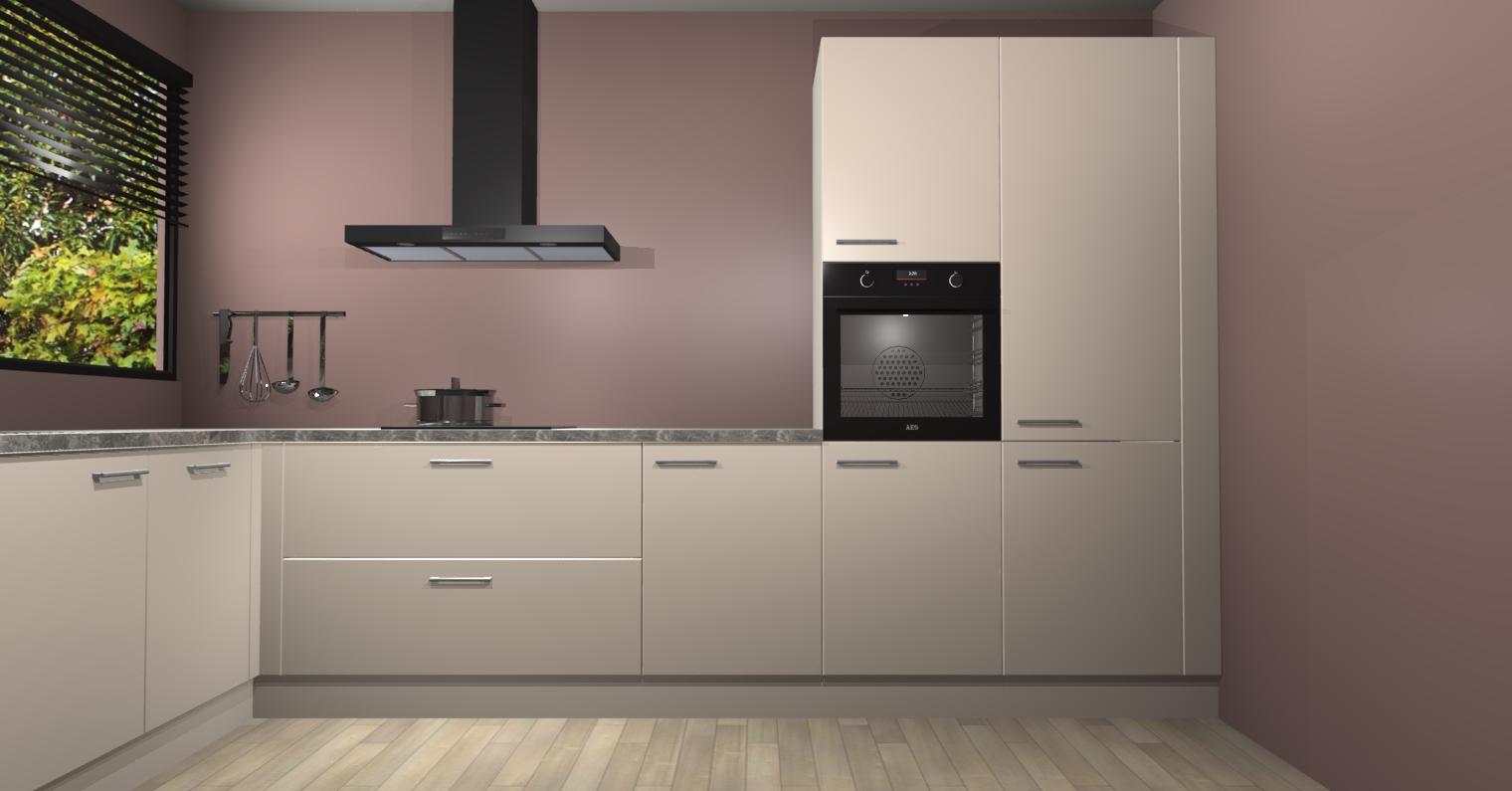 Met een modern, tijdloos design en ruime opslagruimte, zult u zich in no-time thuis voelen in uw nieuwe keuken. Uw leven wordt eenvoudiger met de soft-close deuren die voor het ultieme stille comfort zorgen - geen geluid dat u stoort terwijl u kookt. Ook is de keuken voorzien van 5 ingebouwde apparaten: een oven, inductie kookplaat, afzuigkap, vaatwasser en koelkast. Deze kunnen gemakkelijk na bestelling worden bijgewerkt naar AEG - waardoor uw luxe ervaring compleet is.