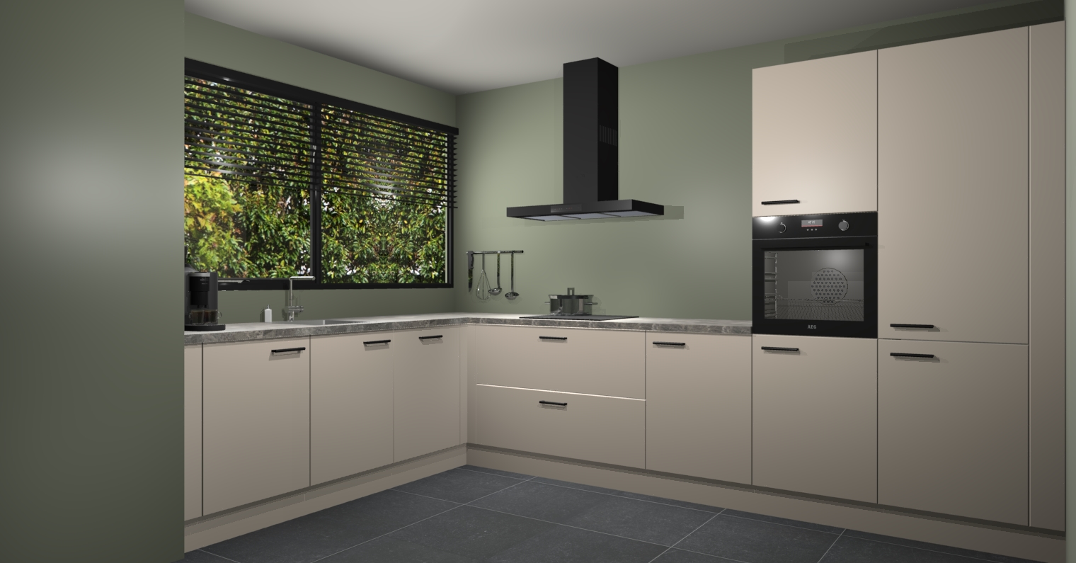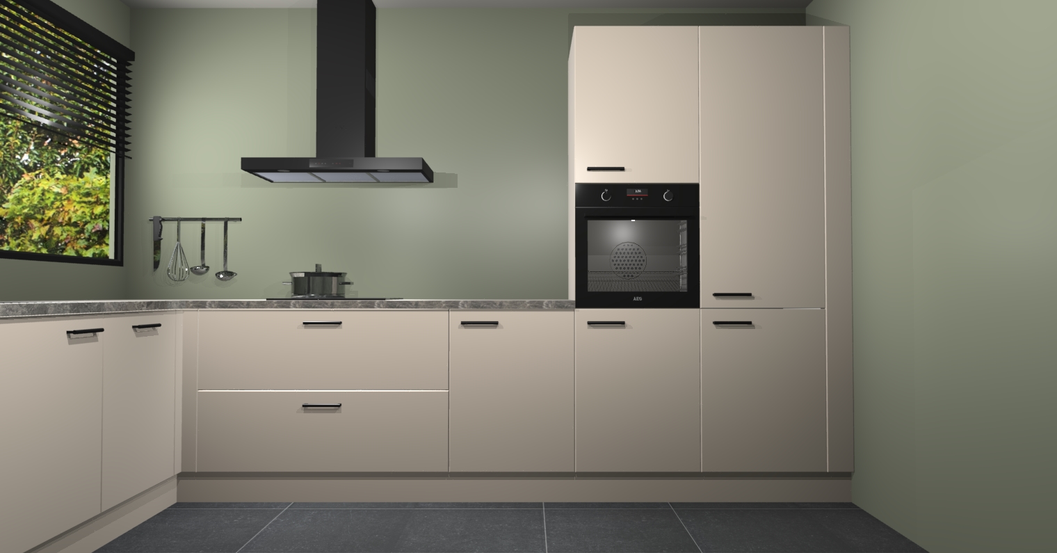 Met een modern, tijdloos design en ruime opslagruimte, zult u zich in no-time thuis voelen in uw nieuwe keuken. Uw leven wordt eenvoudiger met de soft-close deuren die voor het ultieme stille comfort zorgen - geen geluid dat u stoort terwijl u kookt. Ook is de keuken voorzien van 5 ingebouwde apparaten: een oven, inductie kookplaat, afzuigkap, vaatwasser en koelkast. Deze kunnen gemakkelijk na bestelling worden bijgewerkt naar AEG - waardoor uw luxe ervaring compleet is.