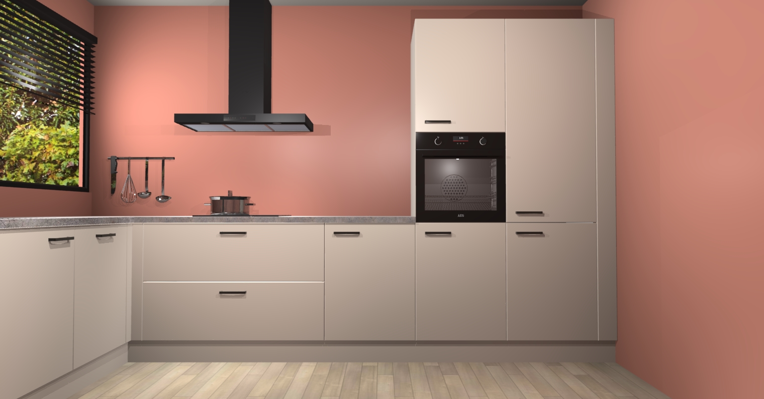 Met een modern, tijdloos design en ruime opslagruimte, zult u zich in no-time thuis voelen in uw nieuwe keuken. Uw leven wordt eenvoudiger met de soft-close deuren die voor het ultieme stille comfort zorgen - geen geluid dat u stoort terwijl u kookt. Ook is de keuken voorzien van 5 ingebouwde apparaten: een oven, inductie kookplaat, afzuigkap, vaatwasser en koelkast. Deze kunnen gemakkelijk na bestelling worden bijgewerkt naar AEG - waardoor uw luxe ervaring compleet is.