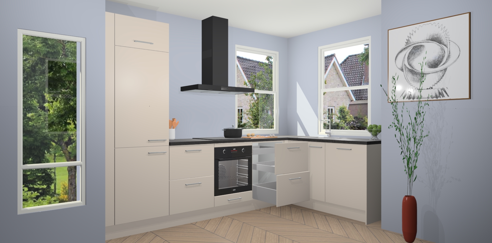 In deze box zijn alle kleuren verzameld van de deuren en werkbladen. Vraag de gratis kleurenbox aan en kijk thuis rustig verder!