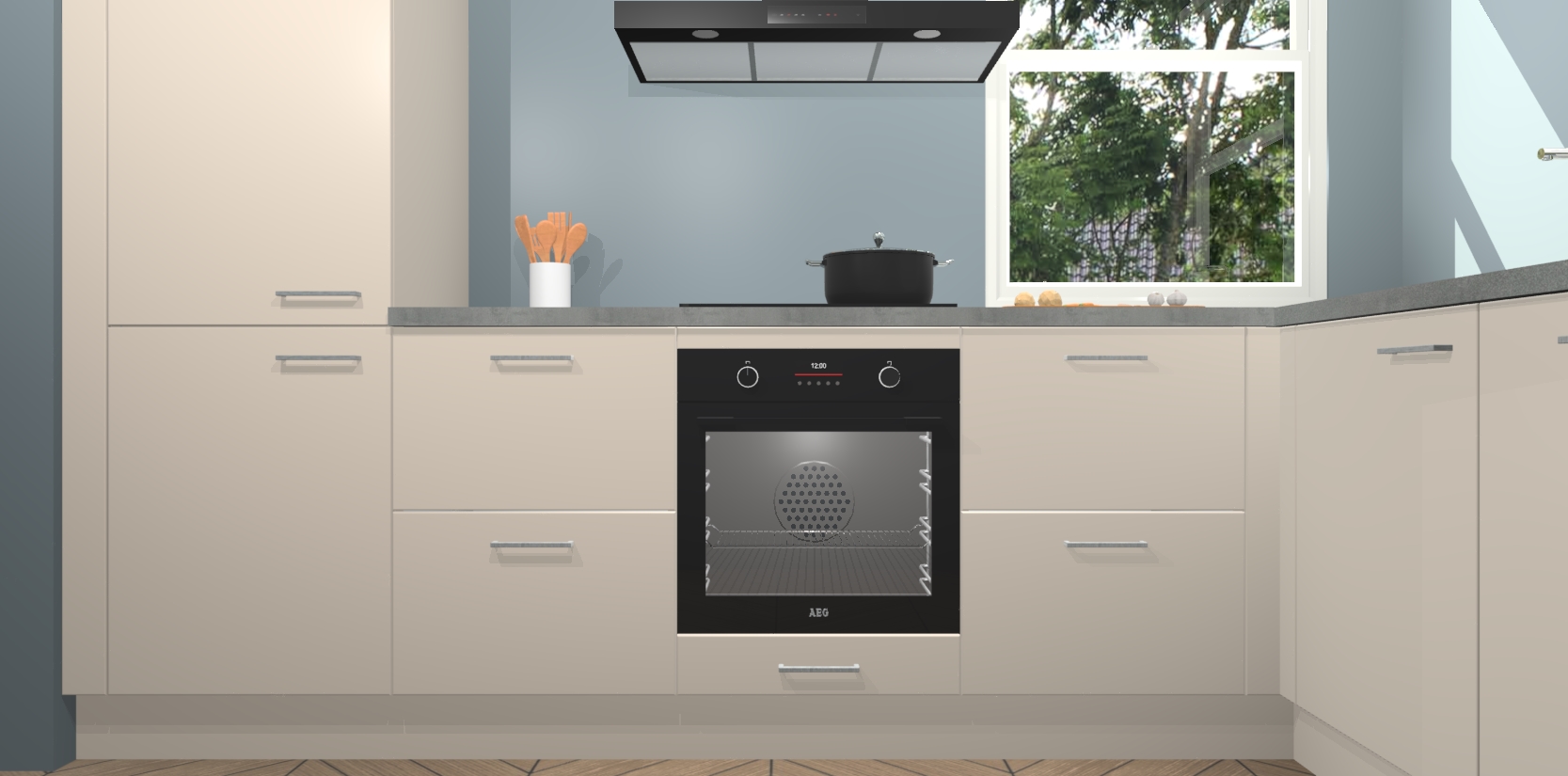 Wat maakt deze keuken zo bijzonder? Ten eerste geeft het houten werkblad uw ruimte een onmiskenbaar klassieke uitstraling. De natuurlijke afwerking roept warmte en elegantie op die nooit uit de mode zullen raken. Bovendien is het gemakkelijk schoon te houden en te onderhouden, zodat je er jarenlang plezier van kunt hebben. Als u op zoek bent naar extra gemak in uw keuken, dan heeft u bij het plaatsen van een bestelling bij ons ook de optie om uw toestellen te upgraden naar AEG-modellen - zo haalt u moderne innovatie van topmerken in apparatentechnologie rechtstreeks in huis.