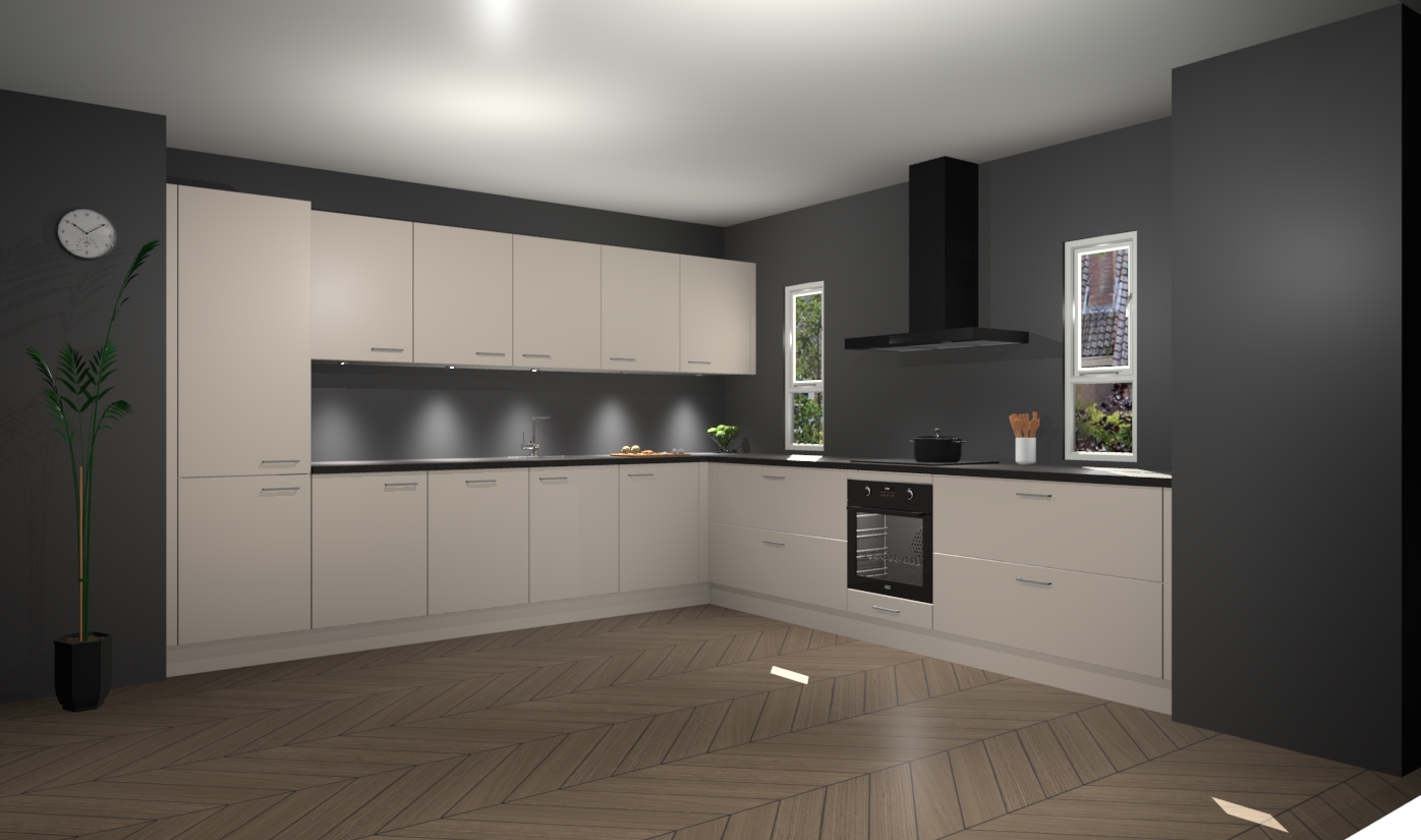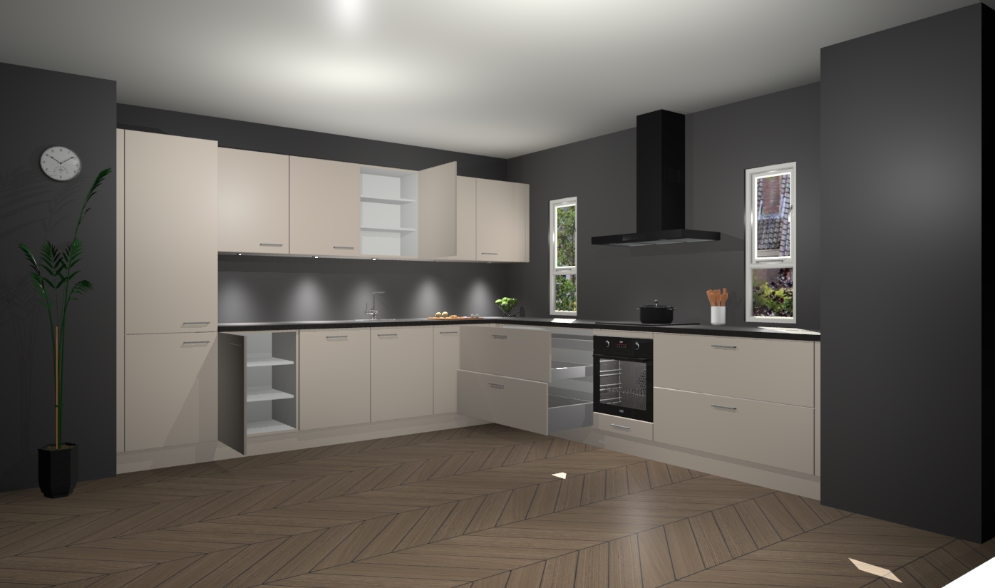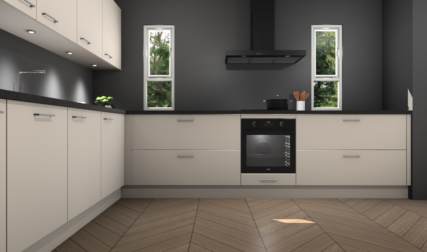 De kasjmier keuken is een ideale hoekkeuken en heeft alle functies en apparatuur die u maar nodig kunt hebben. Bij de bestelling krijgt u een oven, inductiekookplaat, afzuigkap, vaatwasser en koelkast - deze kunnen desgewenst eenvoudig worden uitgebreid naar AEG na bestellen. Elke kast wordt ook voor gemonteerd geleverd met soft close deuren die jarenlang gebruik beloven. Stelt u zich voor dat u geen gedoe heeft met vervelende montage - vanaf het moment dat u uw bestelling plaats, duurt het slechts 7 weken voor het bij u thuis geleverd wordt.