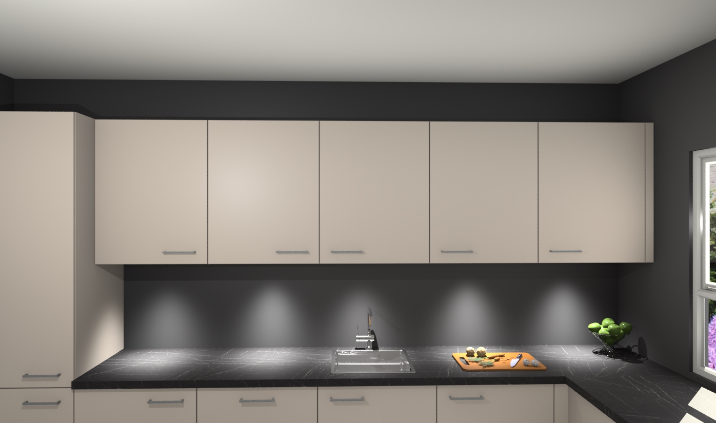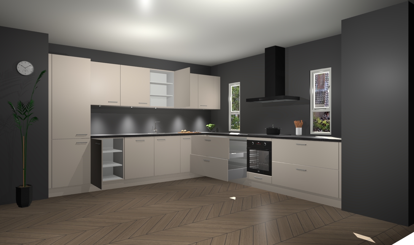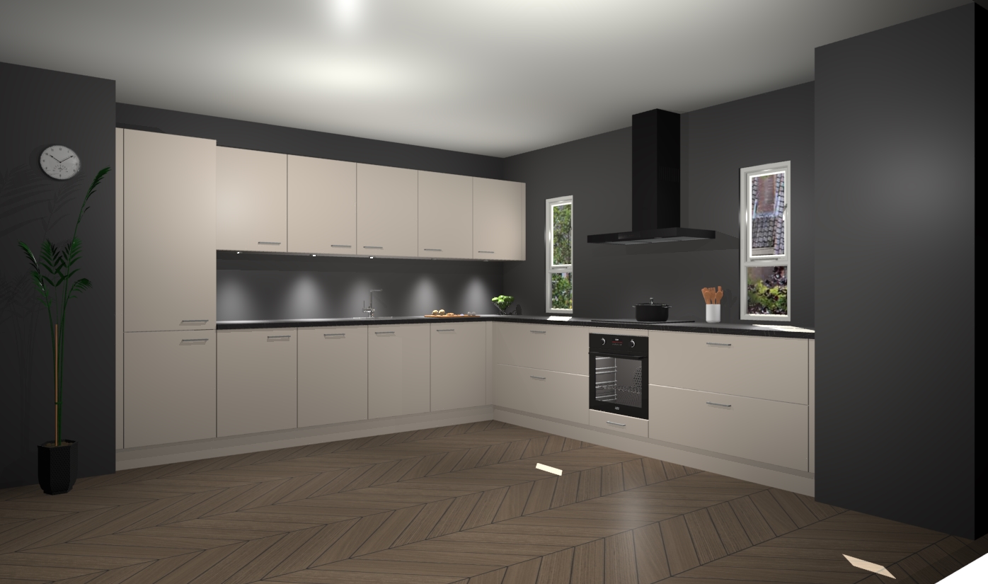 De kasjmier keuken is een ideale hoekkeuken en heeft alle functies en apparatuur die u maar nodig kunt hebben. Bij de bestelling krijgt u een oven, inductiekookplaat, afzuigkap, vaatwasser en koelkast - deze kunnen desgewenst eenvoudig worden uitgebreid naar AEG na bestellen. Elke kast wordt ook voor gemonteerd geleverd met soft close deuren die jarenlang gebruik beloven. Stelt u zich voor dat u geen gedoe heeft met vervelende montage - vanaf het moment dat u uw bestelling plaats, duurt het slechts 7 weken voor het bij u thuis geleverd wordt.