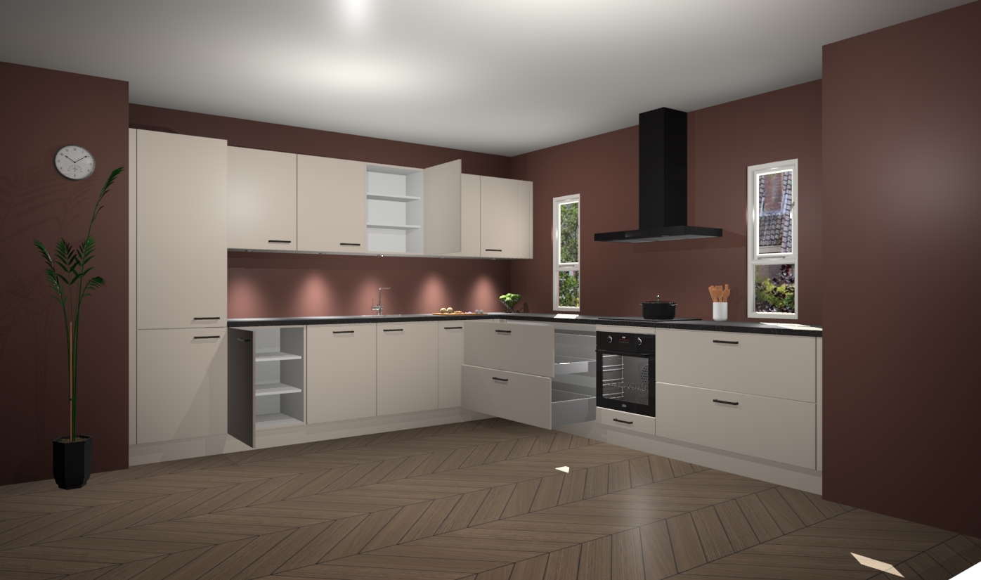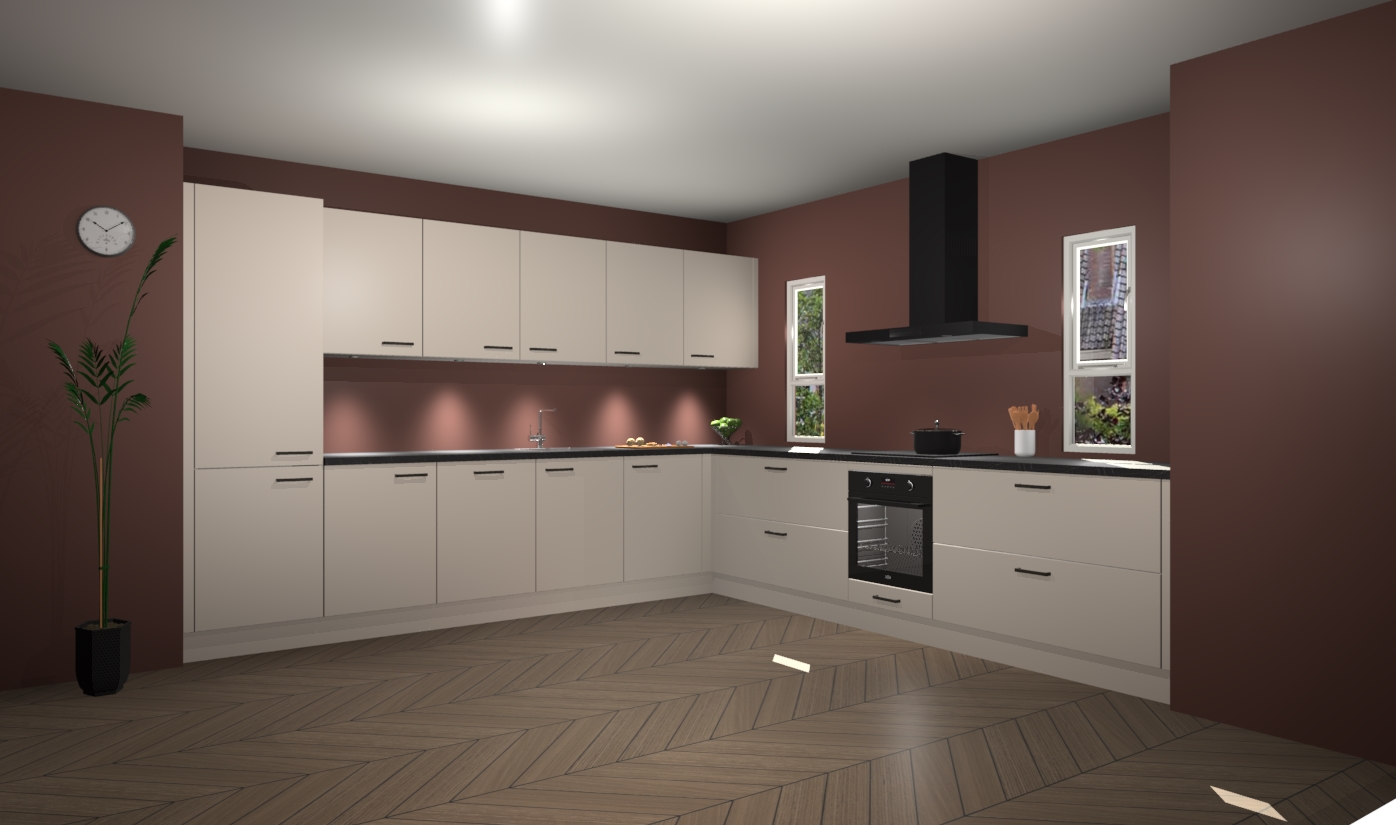 De kasjmier keuken is een ideale hoekkeuken en heeft alle functies en apparatuur die u maar nodig kunt hebben. Bij de bestelling krijgt u een oven, inductiekookplaat, afzuigkap, vaatwasser en koelkast - deze kunnen desgewenst eenvoudig worden uitgebreid naar AEG na bestellen. Elke kast wordt ook voor gemonteerd geleverd met soft close deuren die jarenlang gebruik beloven. Stelt u zich voor dat u geen gedoe heeft met vervelende montage - vanaf het moment dat u uw bestelling plaats, duurt het slechts 7 weken voor het bij u thuis geleverd wordt.