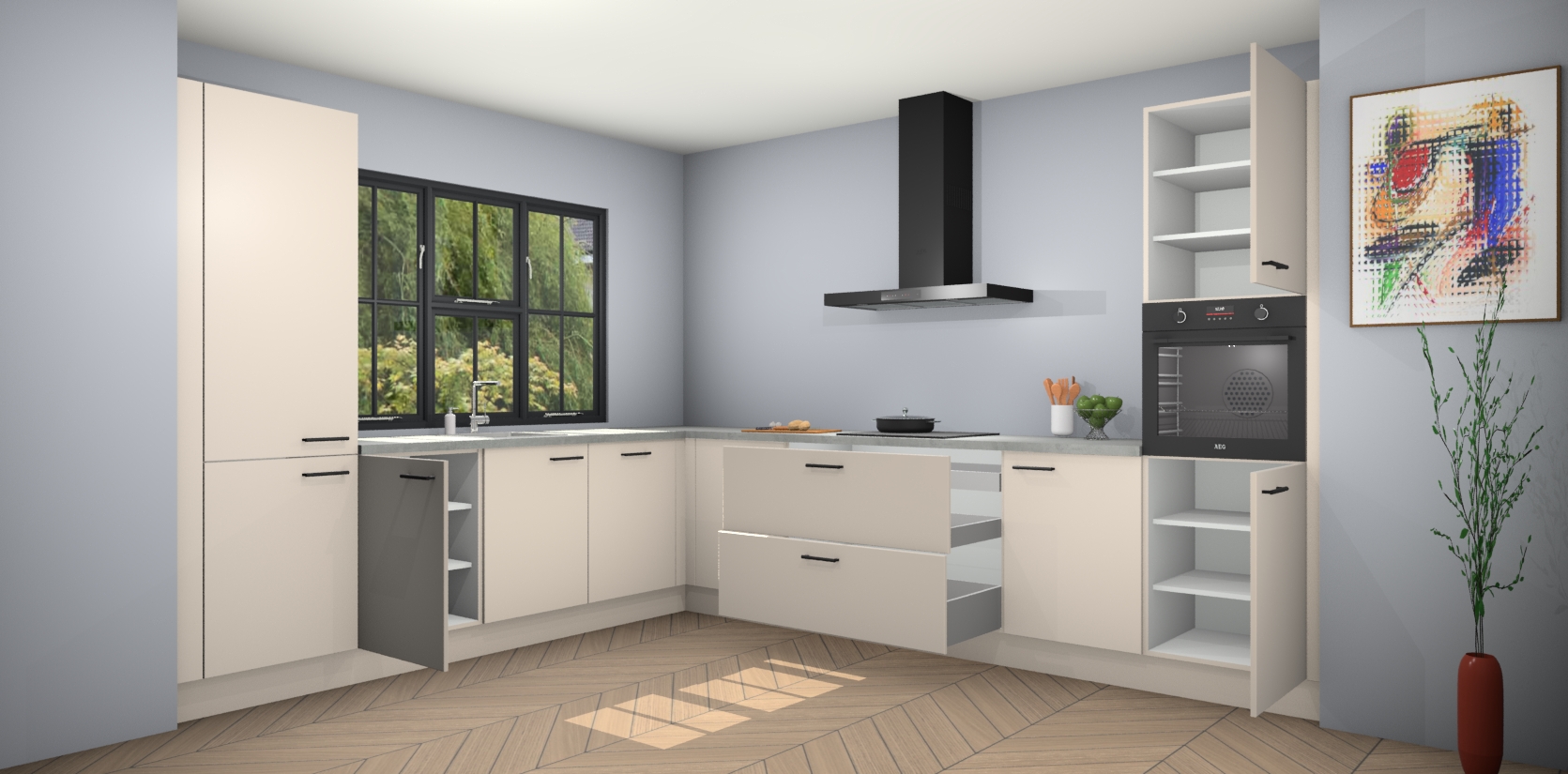 Inclusief plinten, stelpoten en werkblad