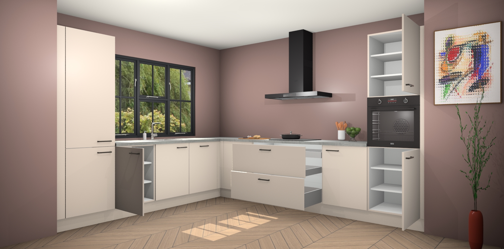 In deze box zijn alle kleuren verzameld van de deuren en werkbladen. Vraag de gratis kleurenbox aan en kijk thuis rustig verder!