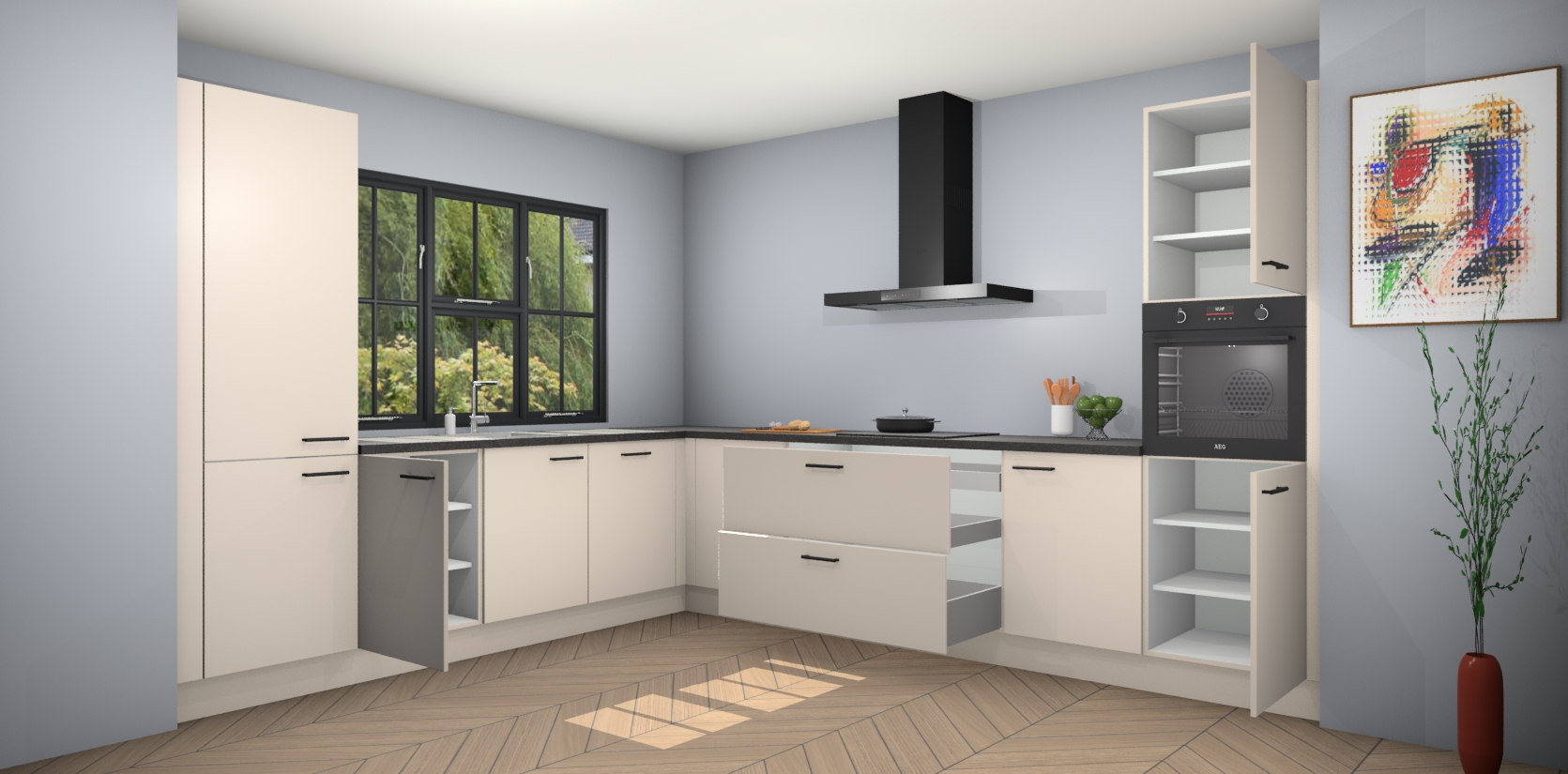 In deze box zijn alle kleuren verzameld van de deuren en werkbladen. Vraag de gratis kleurenbox aan en kijk thuis rustig verder!