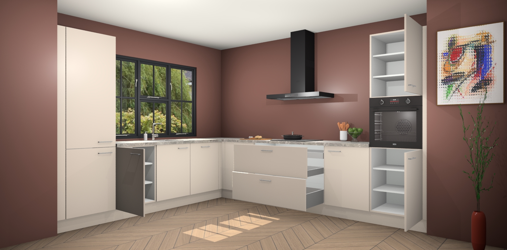 Inclusief plinten, stelpoten en werkblad