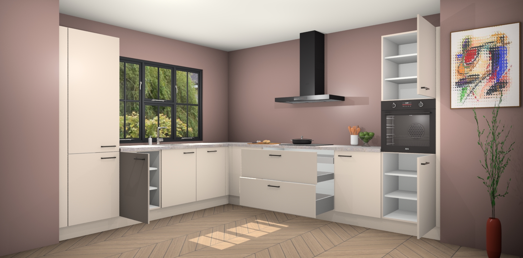 In deze box zijn alle kleuren verzameld van de deuren en werkbladen. Vraag de gratis kleurenbox aan en kijk thuis rustig verder!