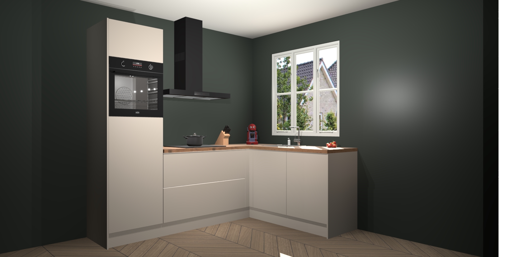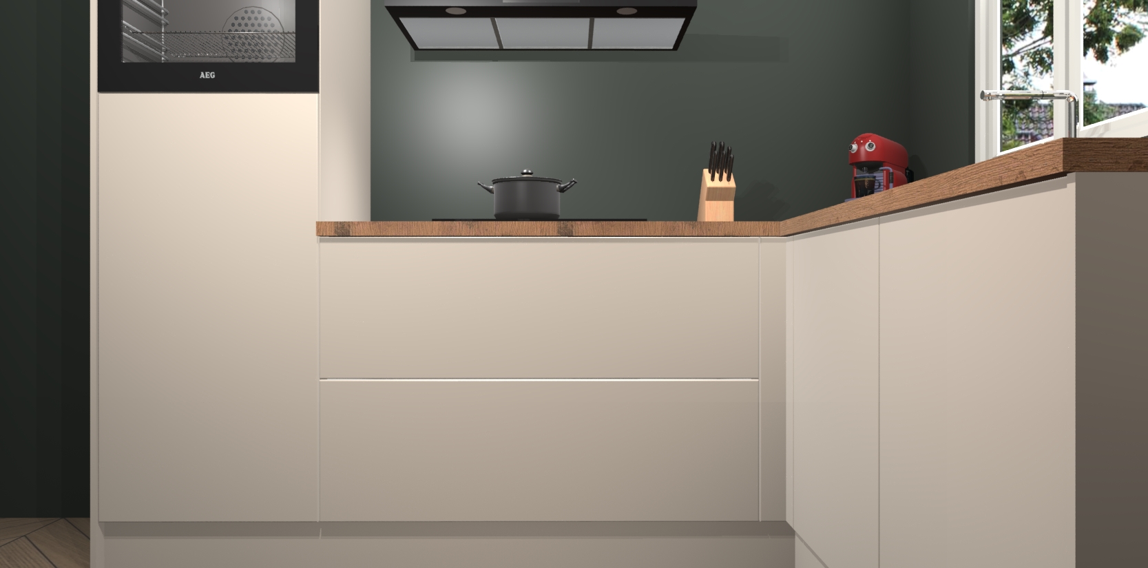 Dit model biedt u voldoende opbergruimte en vijf ingebouwde apparaten: een oven, inductiekookplaat, afzuigkap, vaatwasser en koelkast. Deze apparaten kunnen gemakkelijk worden geüpgrade naar AEG nadat u besteld heeft. De verschillende laden en kastjes bevatten softclose-deuren waardoor ze gezellig dichtvallen met een geruststellend helemaal geruisloos geluid. En dat is nog niet alles! We garanderen ook dat de prijs altijd laag blijft - dus haal nu uw Kasjmier keuken Victoria terwijl het kan.