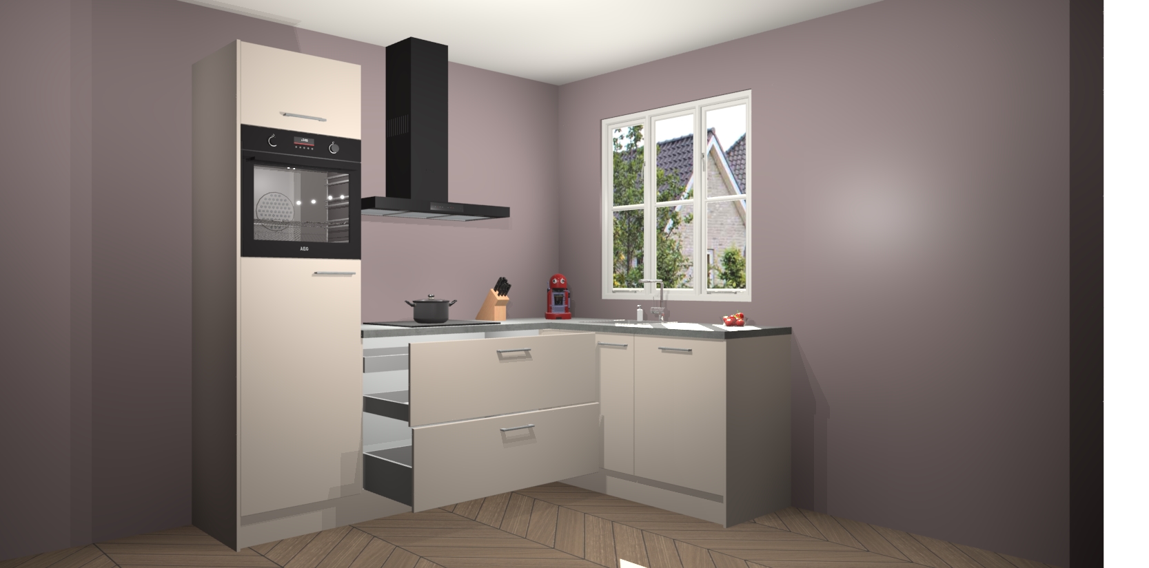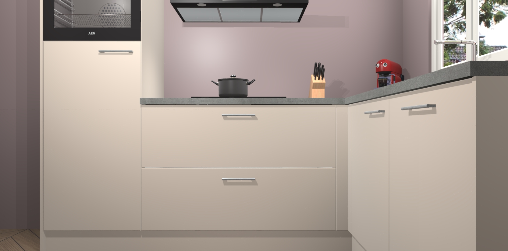 Dit model biedt u voldoende opbergruimte en vijf ingebouwde apparaten: een oven, inductiekookplaat, afzuigkap, vaatwasser en koelkast. Deze apparaten kunnen gemakkelijk worden geüpgrade naar AEG nadat u besteld heeft. De verschillende laden en kastjes bevatten softclose-deuren waardoor ze gezellig dichtvallen met een geruststellend helemaal geruisloos geluid. En dat is nog niet alles! We garanderen ook dat de prijs altijd laag blijft - dus haal nu uw Kasjmier keuken Victoria terwijl het kan.