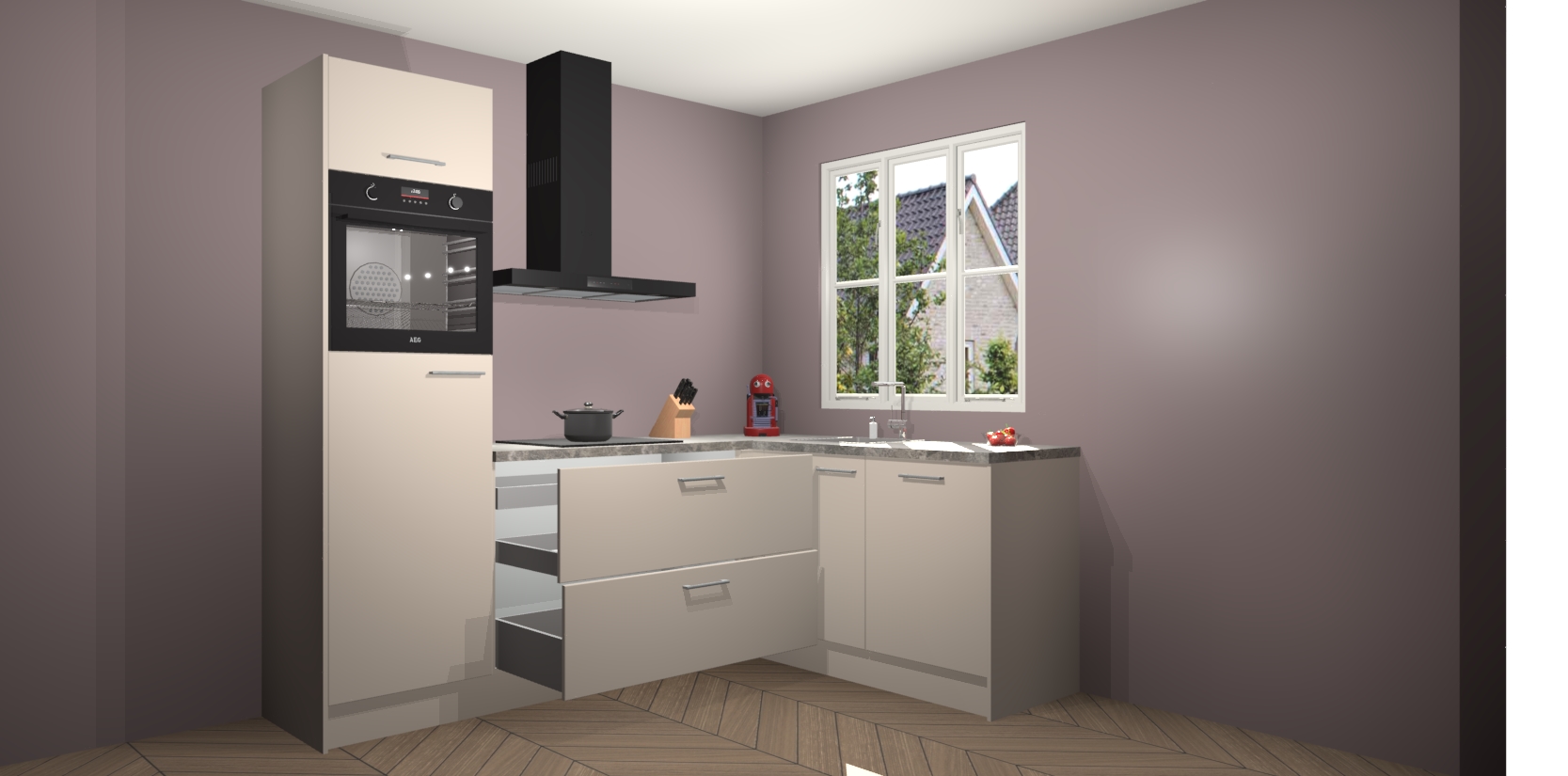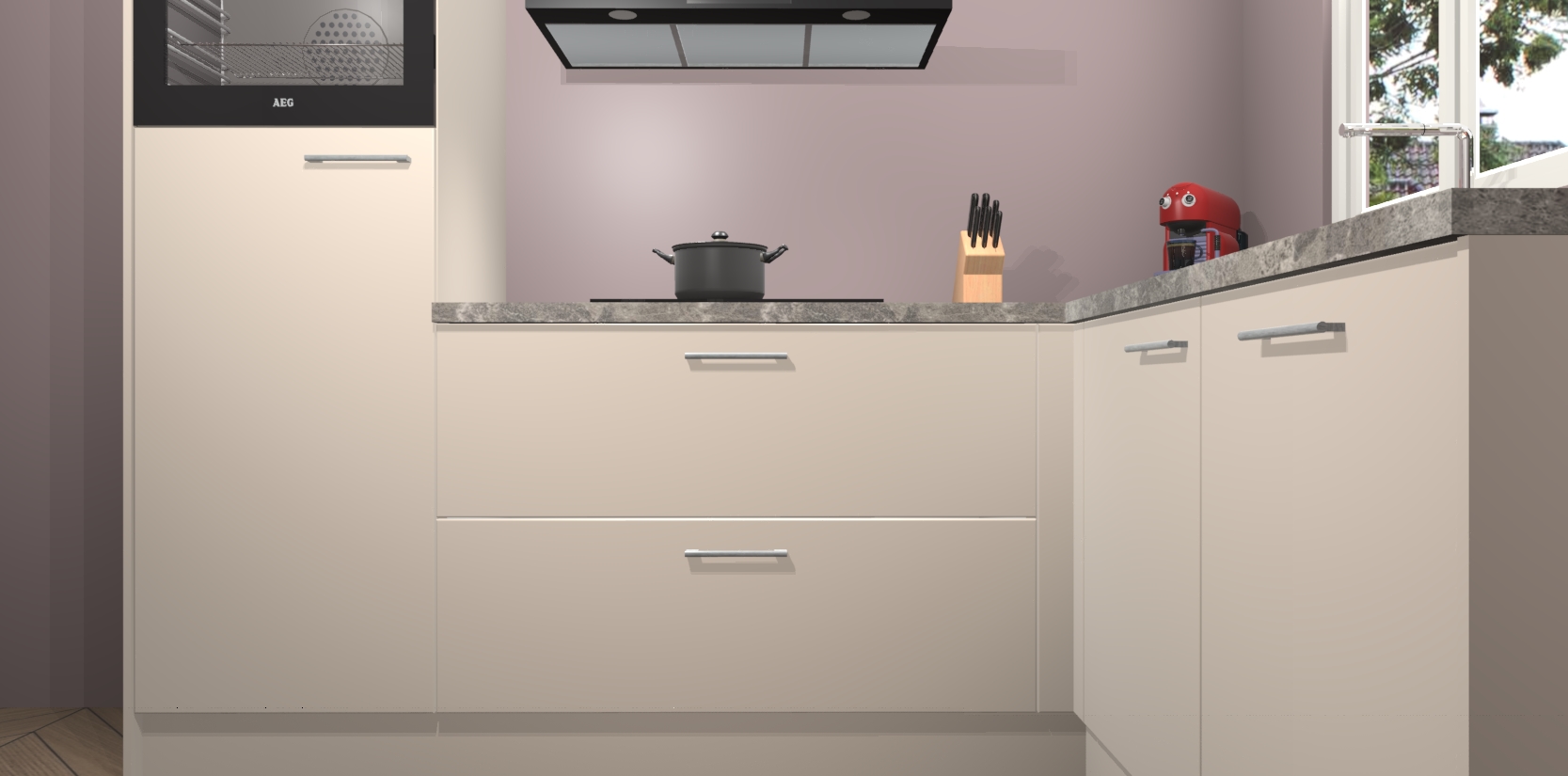 Dit model biedt u voldoende opbergruimte en vijf ingebouwde apparaten: een oven, inductiekookplaat, afzuigkap, vaatwasser en koelkast. Deze apparaten kunnen gemakkelijk worden geüpgrade naar AEG nadat u besteld heeft. De verschillende laden en kastjes bevatten softclose-deuren waardoor ze gezellig dichtvallen met een geruststellend helemaal geruisloos geluid. En dat is nog niet alles! We garanderen ook dat de prijs altijd laag blijft - dus haal nu uw Kasjmier keuken Victoria terwijl het kan.