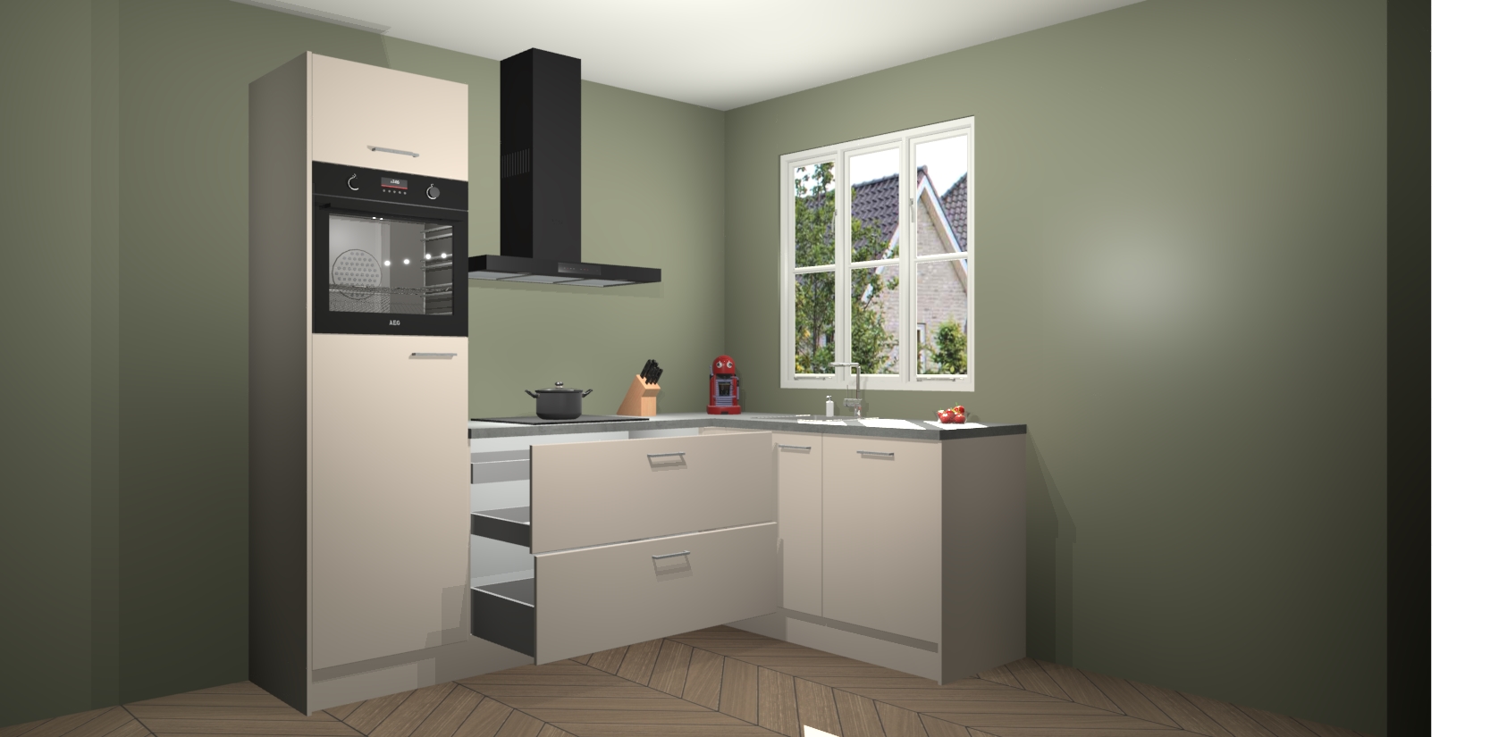 Dit model biedt u voldoende opbergruimte en vijf ingebouwde apparaten: een oven, inductiekookplaat, afzuigkap, vaatwasser en koelkast. Deze apparaten kunnen gemakkelijk worden geüpgrade naar AEG nadat u besteld heeft. De verschillende laden en kastjes bevatten softclose-deuren waardoor ze gezellig dichtvallen met een geruststellend helemaal geruisloos geluid. En dat is nog niet alles! We garanderen ook dat de prijs altijd laag blijft - dus haal nu uw Kasjmier keuken Victoria terwijl het kan.