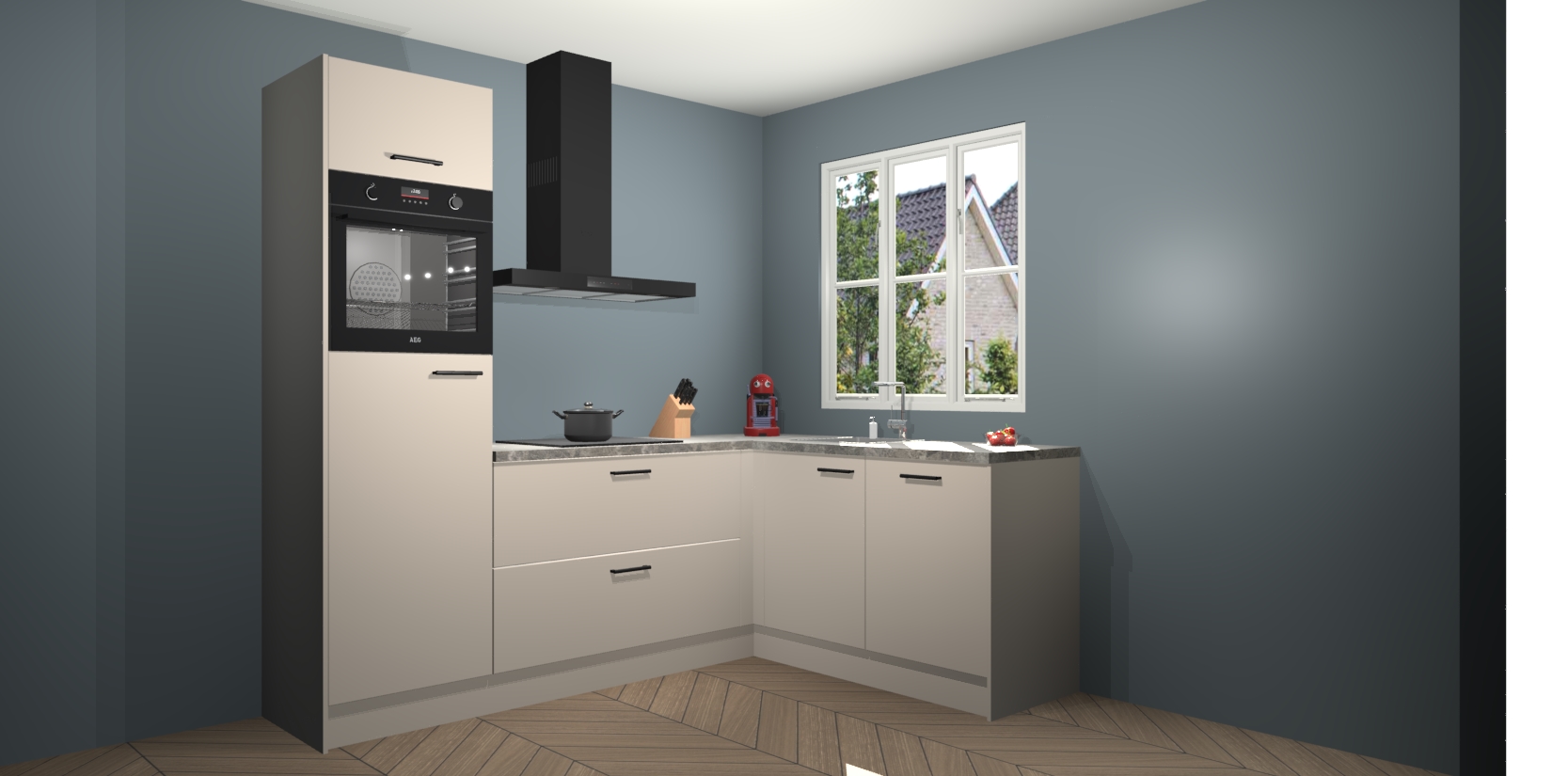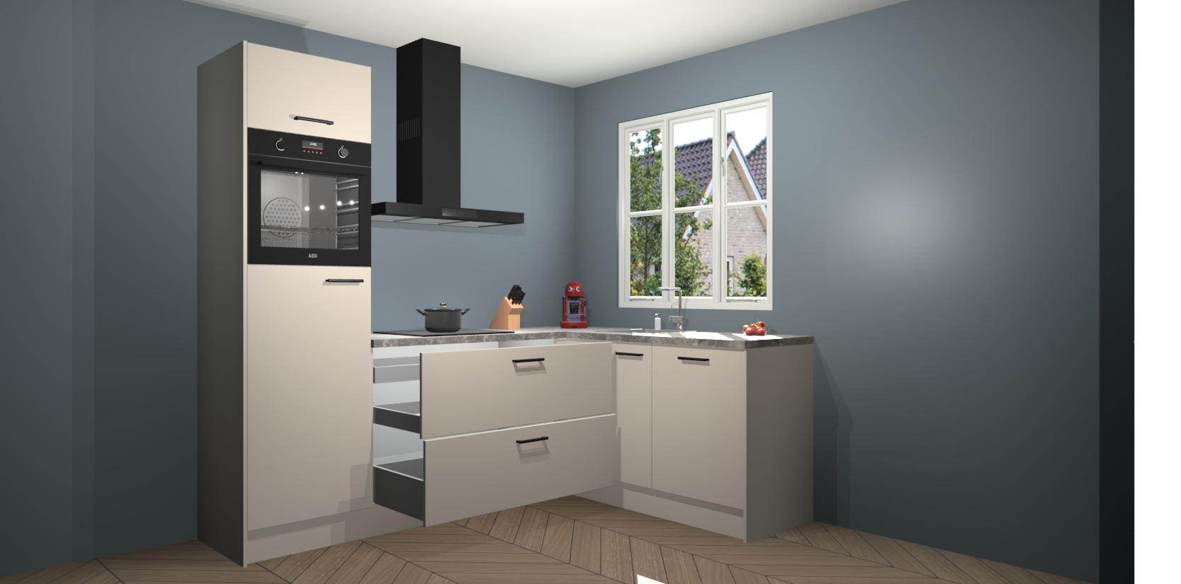 Dit model biedt u voldoende opbergruimte en vijf ingebouwde apparaten: een oven, inductiekookplaat, afzuigkap, vaatwasser en koelkast. Deze apparaten kunnen gemakkelijk worden geüpgrade naar AEG nadat u besteld heeft. De verschillende laden en kastjes bevatten softclose-deuren waardoor ze gezellig dichtvallen met een geruststellend helemaal geruisloos geluid. En dat is nog niet alles! We garanderen ook dat de prijs altijd laag blijft - dus haal nu uw Kasjmier keuken Victoria terwijl het kan.