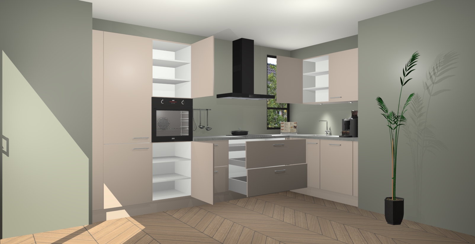 Welkom in uw nieuwe moderne keuken! Laat ons u voorstellen aan de Kasjmier keuken Vlaanderen . Deze prachtige hoekkeuken straalt exclusiviteit en luxe uit als geen ander. Het strakke design, de tijdloze kleuren en het model maken van deze keuken een moderne klassieker. En met voldoende opbergruimte heeft deze keuken echt voor ieder wat wils.