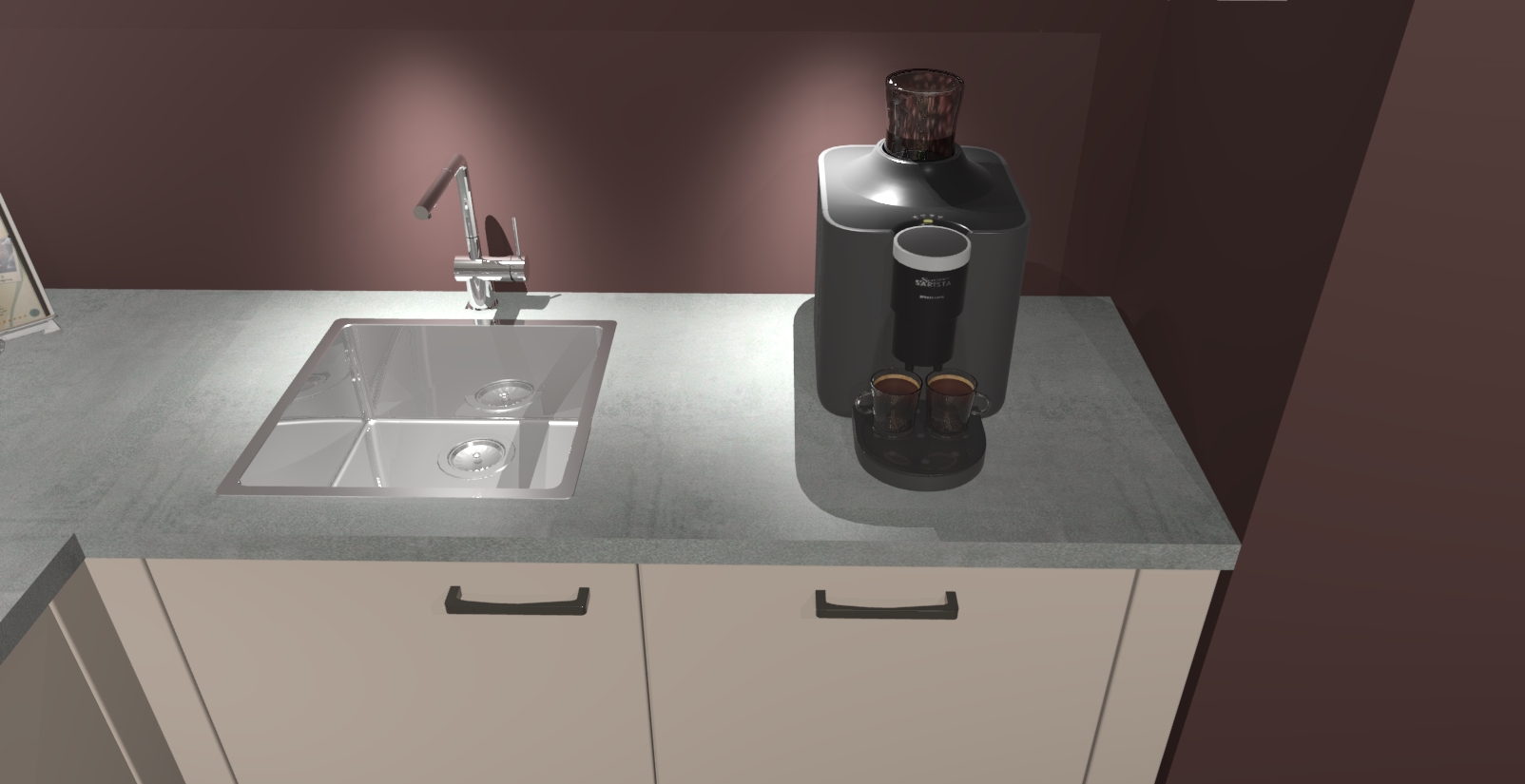 - De spoelbak is nog niet in gevreesd. Dit dient tijdens het werk gedaan te worden