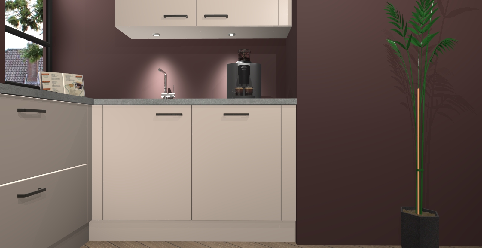 In deze box zijn alle kleuren verzameld van de deuren en werkbladen. Vraag de gratis kleurenbox aan en kijk thuis rustig verder!
