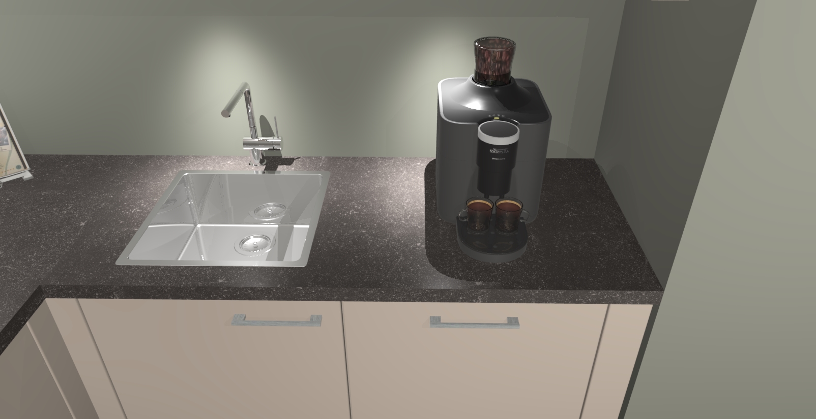 - De spoelbak is nog niet in gevreesd. Dit dient tijdens het werk gedaan te worden