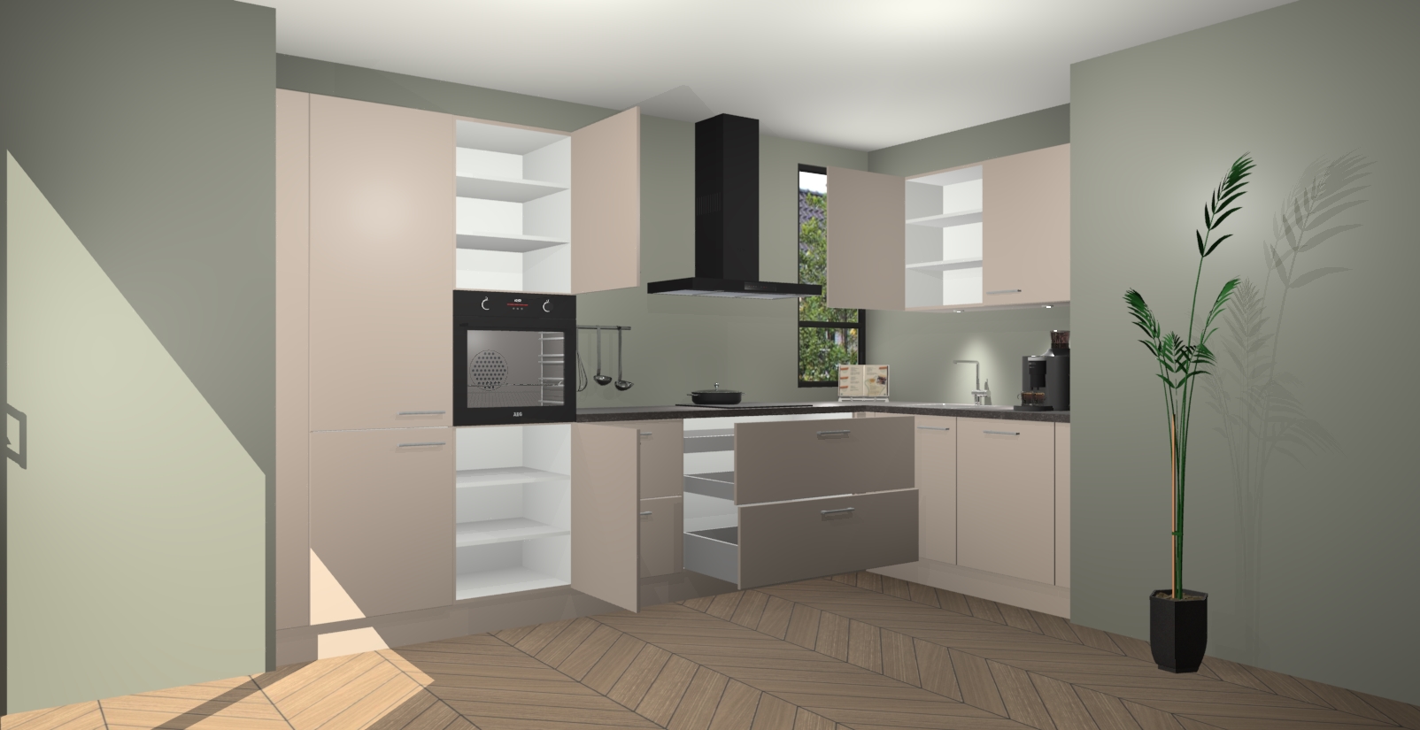 Welkom in uw nieuwe moderne keuken! Laat ons u voorstellen aan de Kasjmier keuken Vlaanderen . Deze prachtige hoekkeuken straalt exclusiviteit en luxe uit als geen ander. Het strakke design, de tijdloze kleuren en het model maken van deze keuken een moderne klassieker. En met voldoende opbergruimte heeft deze keuken echt voor ieder wat wils.
