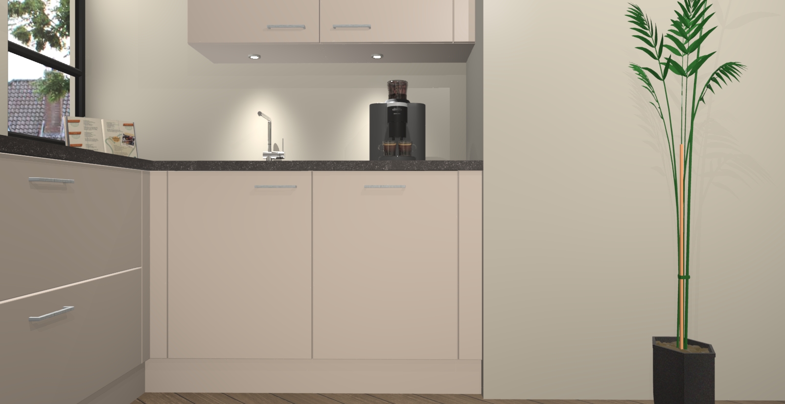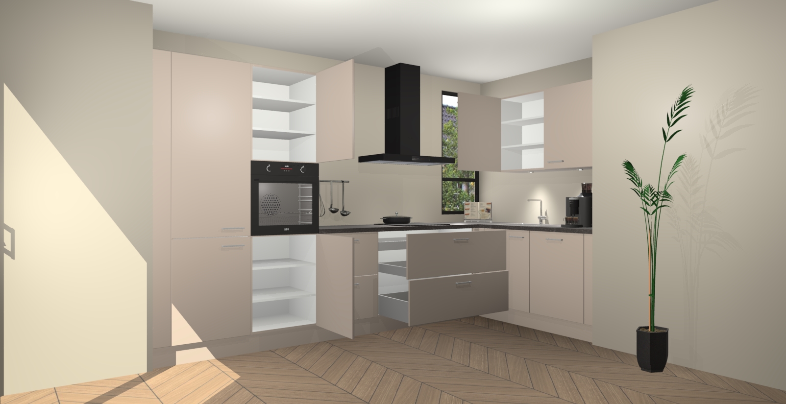 Welkom in uw nieuwe moderne keuken! Laat ons u voorstellen aan de Kasjmier keuken Vlaanderen . Deze prachtige hoekkeuken straalt exclusiviteit en luxe uit als geen ander. Het strakke design, de tijdloze kleuren en het model maken van deze keuken een moderne klassieker. En met voldoende opbergruimte heeft deze keuken echt voor ieder wat wils.