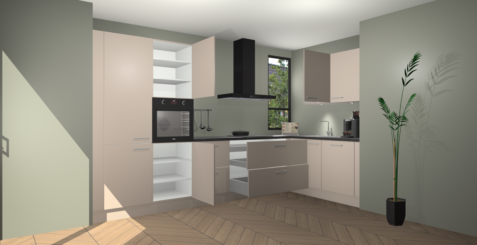 Welkom in uw nieuwe moderne keuken! Laat ons u voorstellen aan de Kasjmier keuken Vlaanderen . Deze prachtige hoekkeuken straalt exclusiviteit en luxe uit als geen ander. Het strakke design, de tijdloze kleuren en het model maken van deze keuken een moderne klassieker. En met voldoende opbergruimte heeft deze keuken echt voor ieder wat wils.