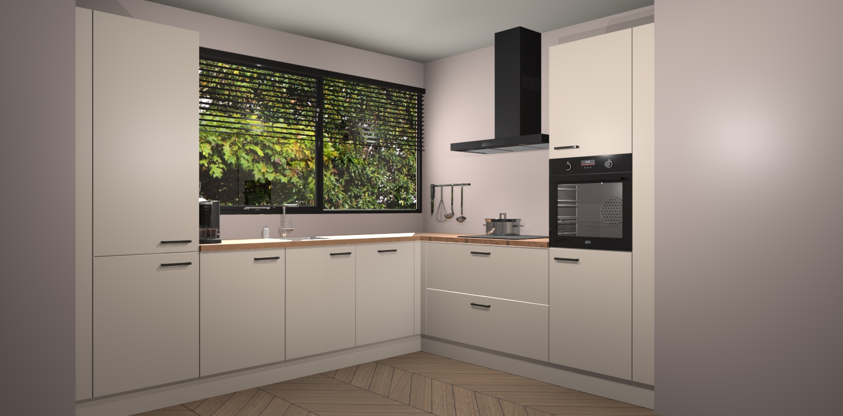 Met een modern, tijdloos design en ruime opslagruimte, zult u zich in no-time thuis voelen in uw nieuwe keuken. Uw leven wordt eenvoudiger met de soft-close deuren die voor het ultieme stille comfort zorgen - geen geluid dat u stoort terwijl u kookt. Ook is de keuken voorzien van 5 ingebouwde apparaten: een oven, inductie kookplaat, afzuigkap, vaatwasser en koelkast. Deze kunnen gemakkelijk na bestelling worden bijgewerkt naar AEG - waardoor uw luxe ervaring compleet is.