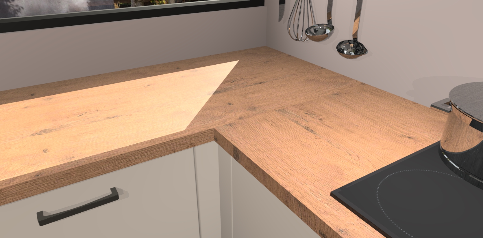 • Bij een hoekwerkblad zijn de hoeken in gevreesd en op maat gemaakt