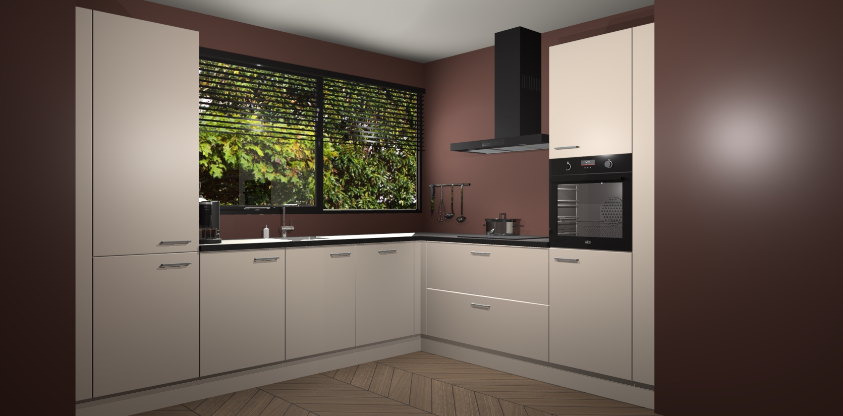 Met een modern, tijdloos design en ruime opslagruimte, zult u zich in no-time thuis voelen in uw nieuwe keuken. Uw leven wordt eenvoudiger met de soft-close deuren die voor het ultieme stille comfort zorgen - geen geluid dat u stoort terwijl u kookt. Ook is de keuken voorzien van 5 ingebouwde apparaten: een oven, inductie kookplaat, afzuigkap, vaatwasser en koelkast. Deze kunnen gemakkelijk na bestelling worden bijgewerkt naar AEG - waardoor uw luxe ervaring compleet is.