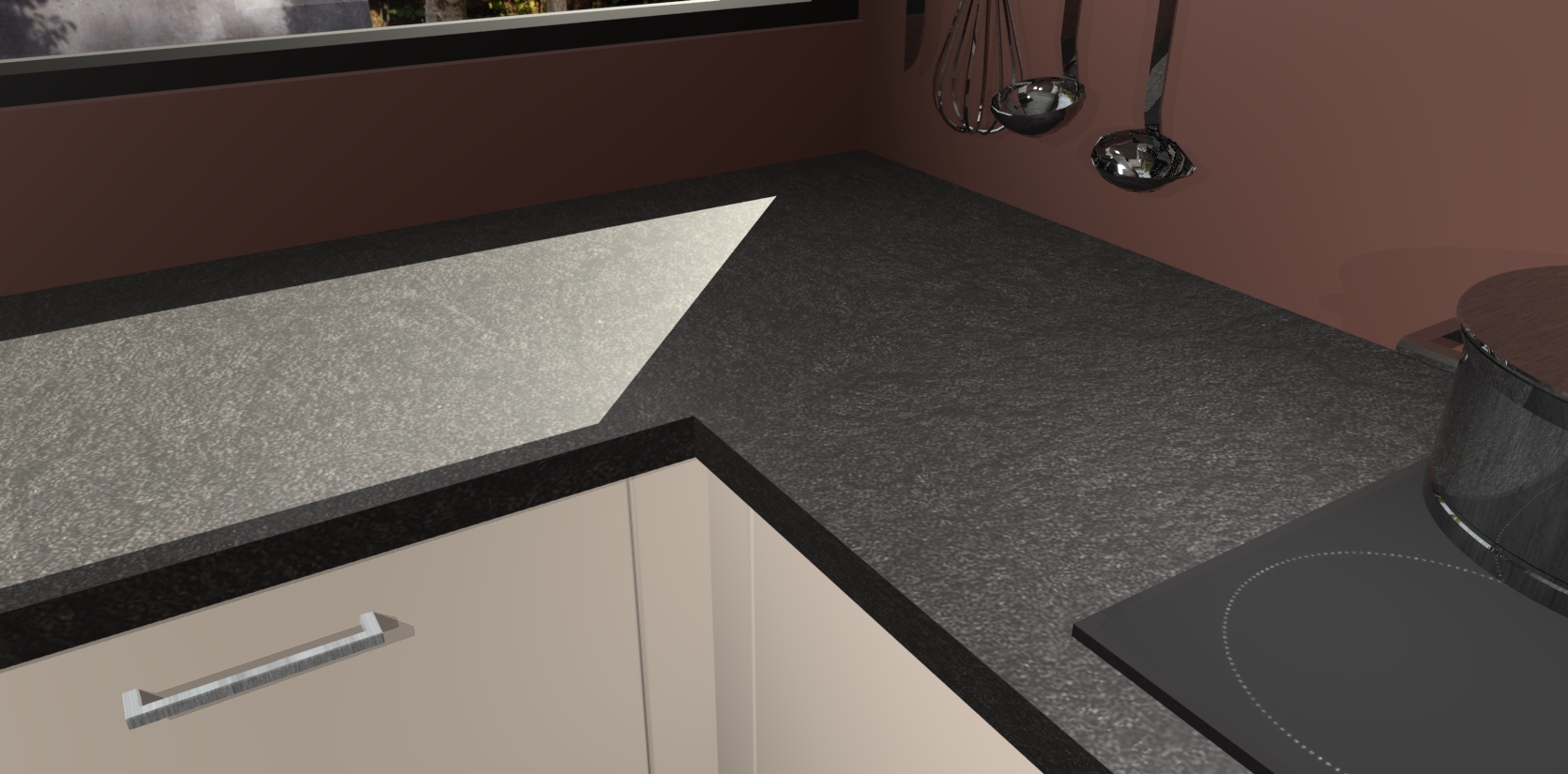 • Bij een hoekwerkblad zijn de hoeken in gevreesd en op maat gemaakt