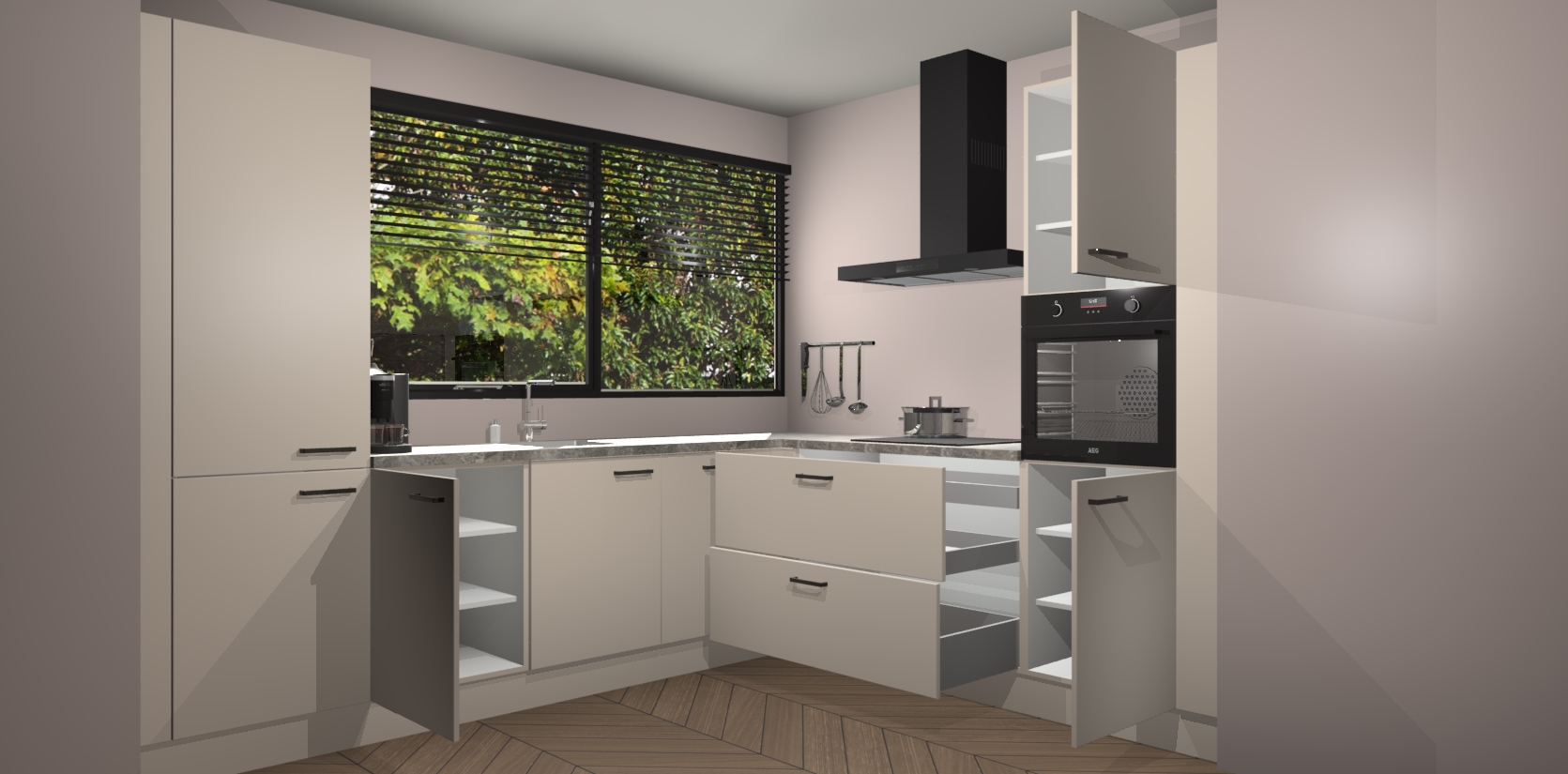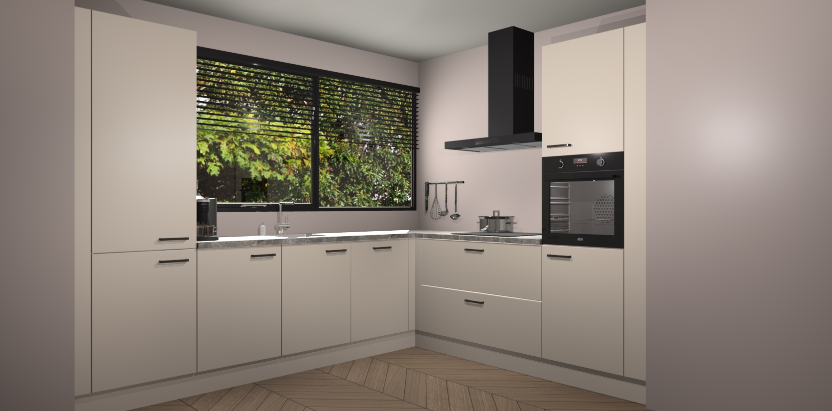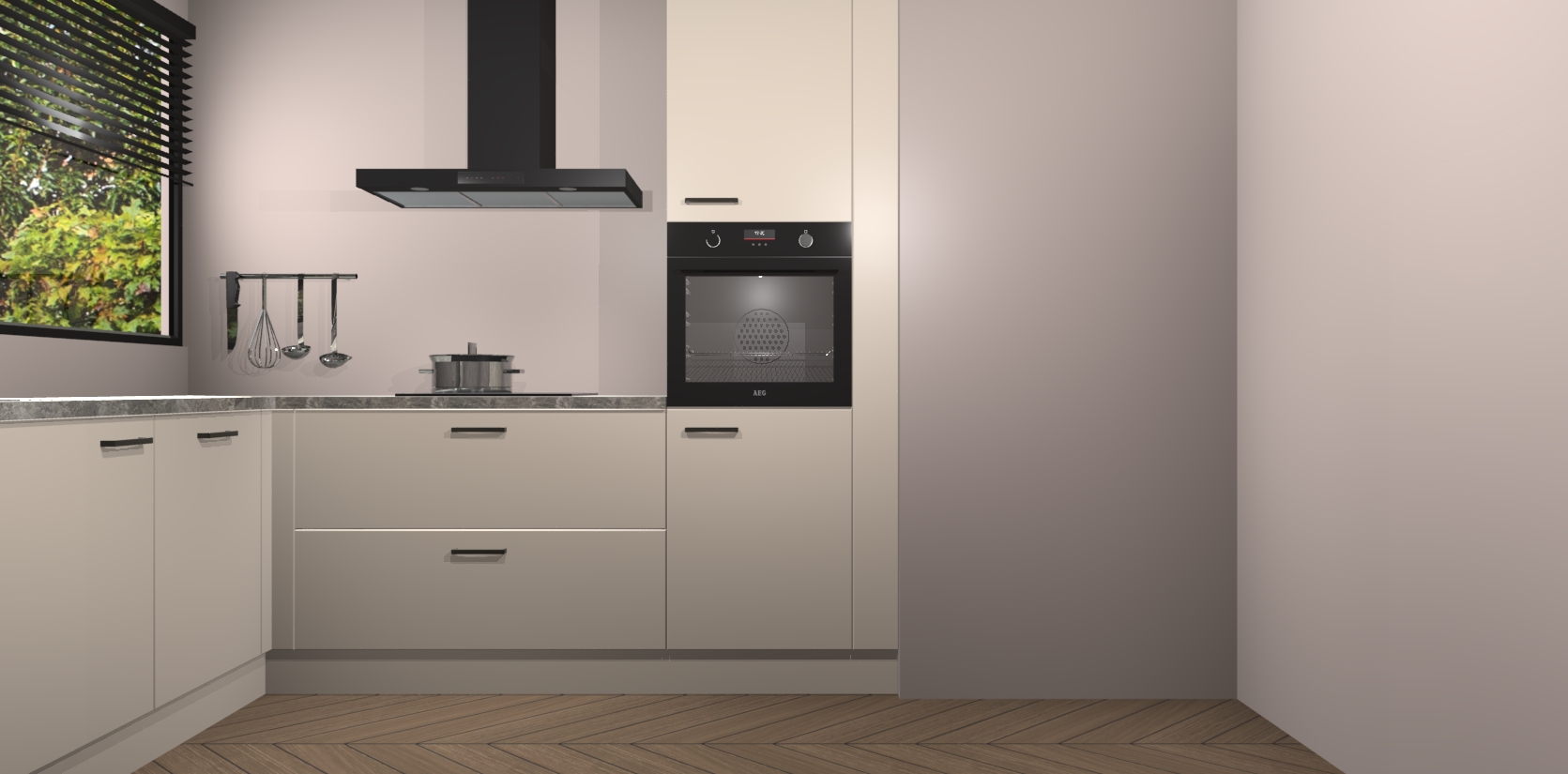 Met een modern, tijdloos design en ruime opslagruimte, zult u zich in no-time thuis voelen in uw nieuwe keuken. Uw leven wordt eenvoudiger met de soft-close deuren die voor het ultieme stille comfort zorgen - geen geluid dat u stoort terwijl u kookt. Ook is de keuken voorzien van 5 ingebouwde apparaten: een oven, inductie kookplaat, afzuigkap, vaatwasser en koelkast. Deze kunnen gemakkelijk na bestelling worden bijgewerkt naar AEG - waardoor uw luxe ervaring compleet is.