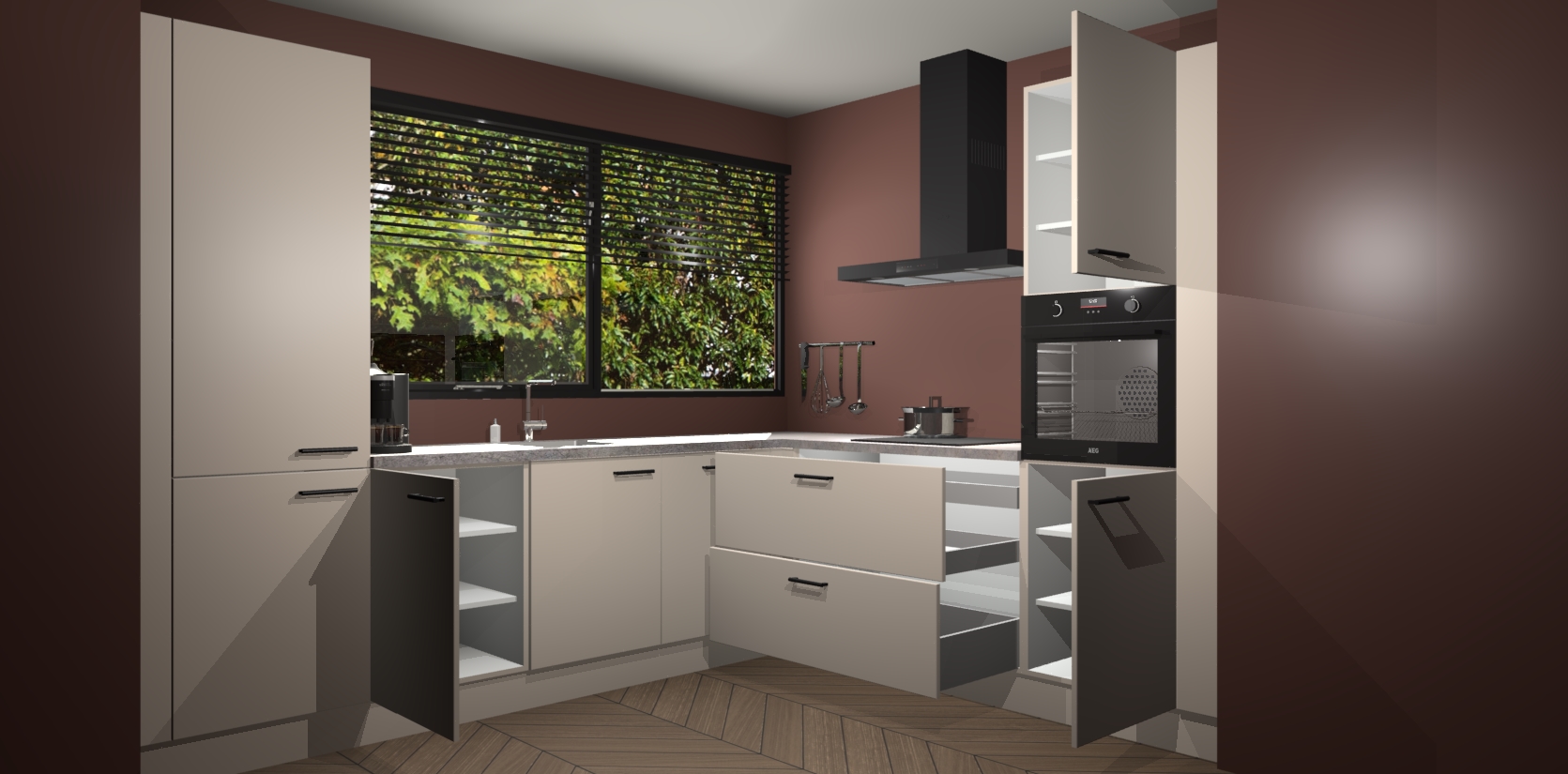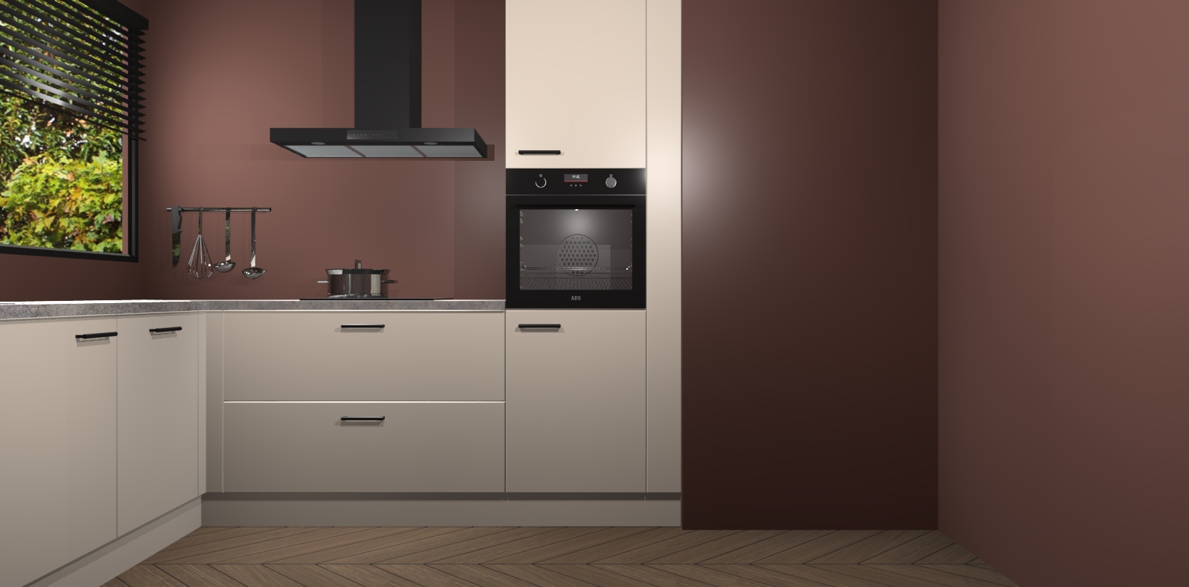 Met een modern, tijdloos design en ruime opslagruimte, zult u zich in no-time thuis voelen in uw nieuwe keuken. Uw leven wordt eenvoudiger met de soft-close deuren die voor het ultieme stille comfort zorgen - geen geluid dat u stoort terwijl u kookt. Ook is de keuken voorzien van 5 ingebouwde apparaten: een oven, inductie kookplaat, afzuigkap, vaatwasser en koelkast. Deze kunnen gemakkelijk na bestelling worden bijgewerkt naar AEG - waardoor uw luxe ervaring compleet is.